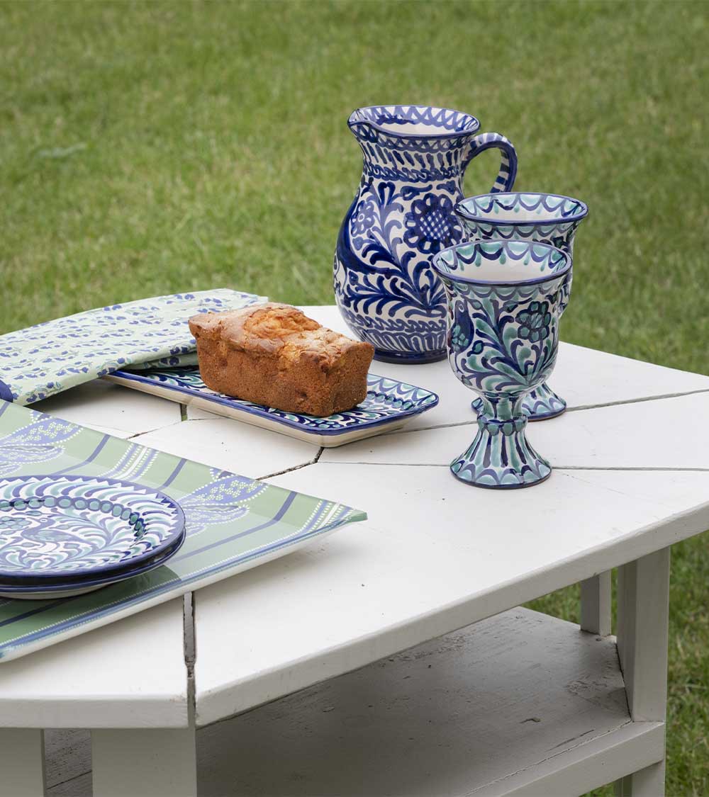 This long dish, available in three colours, black & white, blue & white and red & white with a bird motif nestled in a plant interlacing can be used to present all kinds of dishes, cakes, or terrines.
