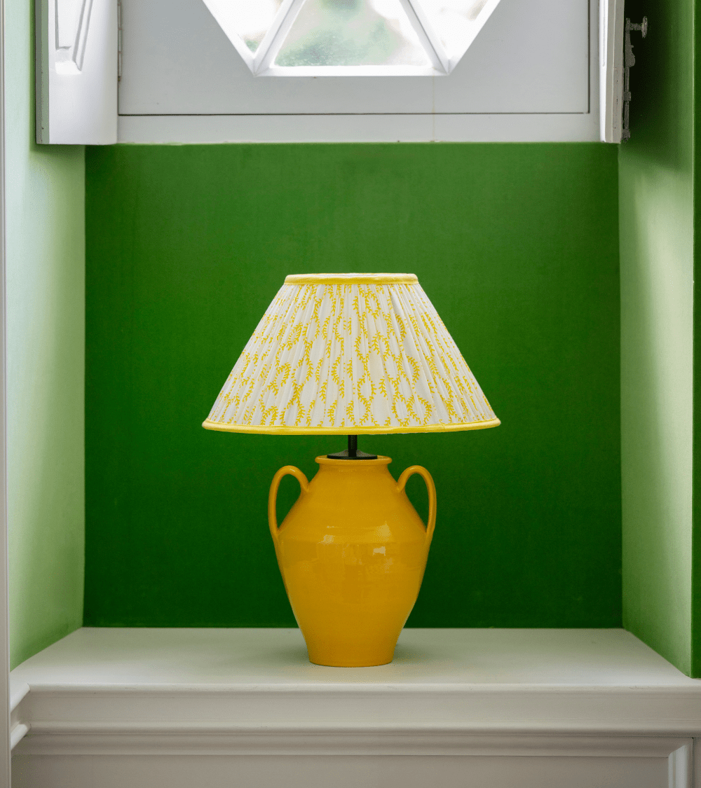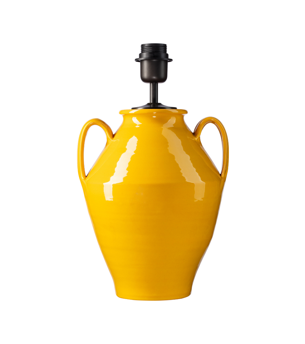 With their jar-shaped legs adorned on each side with beautiful handles, these large hand-glazed earthenware lamps come in one size and multiple colors. Wearing a ruffled lampshade, they stand out in the style of a chic and strong room in a country house contributing to a decorative bias.