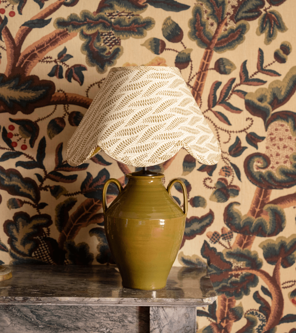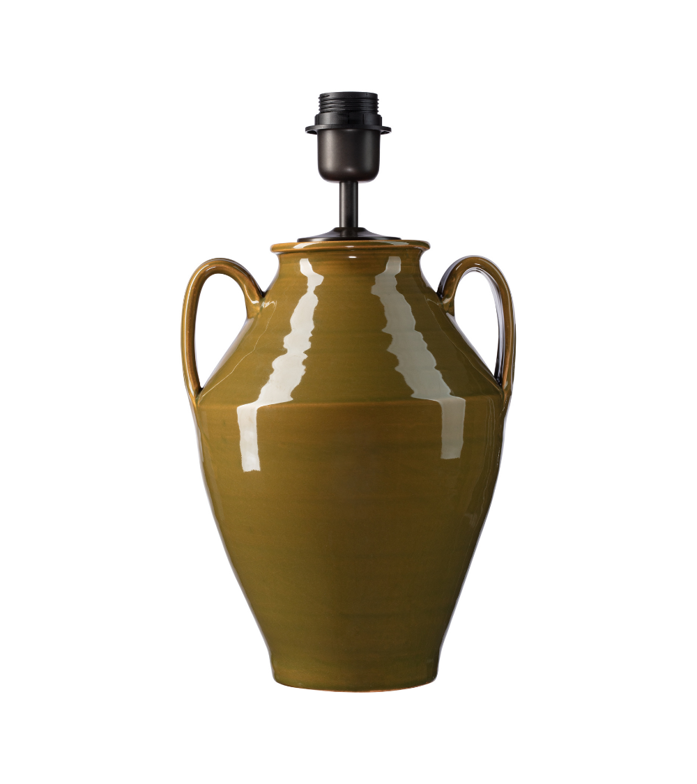 With their jar-shaped legs adorned on each side with beautiful handles, these large hand-glazed earthenware lamps come in one size and multiple colors. Wearing a ruffled lampshade, they stand out in the style of a chic and strong room in a country house contributing to a decorative bias.
