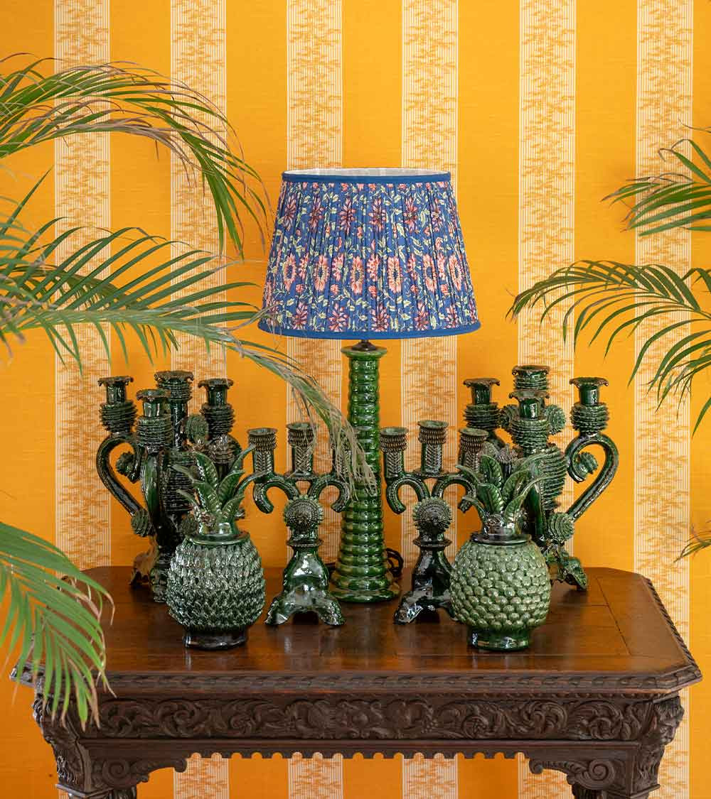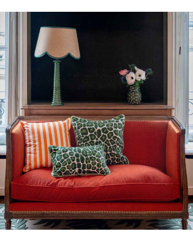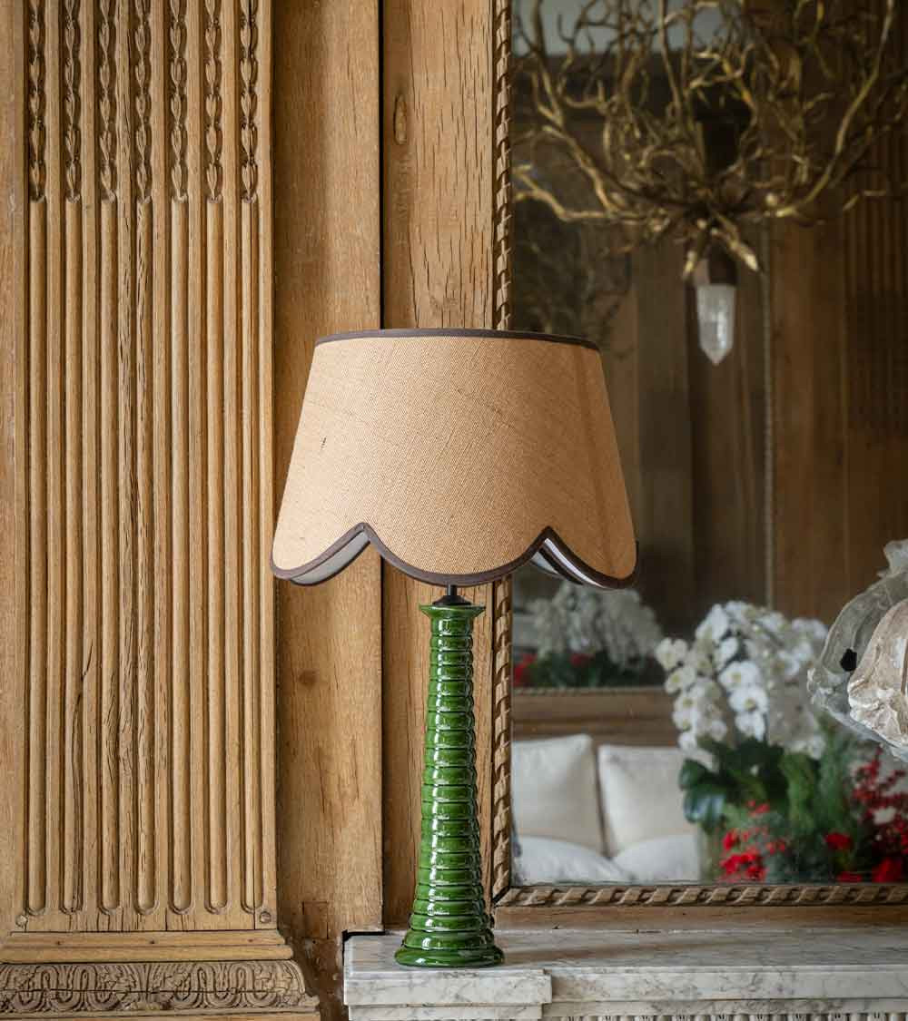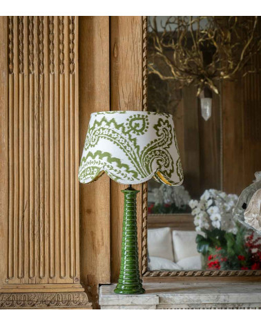 Designed as a succession of enamelled terracotta rings, this high lamp base is available in a wide range of colours to match or contrast with the decor in which it is placed. Dressed in a plain or colourful shade, it is perfect for placing at the end of a sofa. Thanks to its slender size, it will illuminate the reader and the guests in the best possible way.