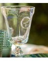 This collection of glasses surmounted by a seal marked with the iconic bird of Casa Lopez is manufactured by hand. Offered in two sizes, stemmed glasses and large water glasses, it is suitable for both party and everyday occasions. You can also choose a glass as a vase and place it on a bedside table.