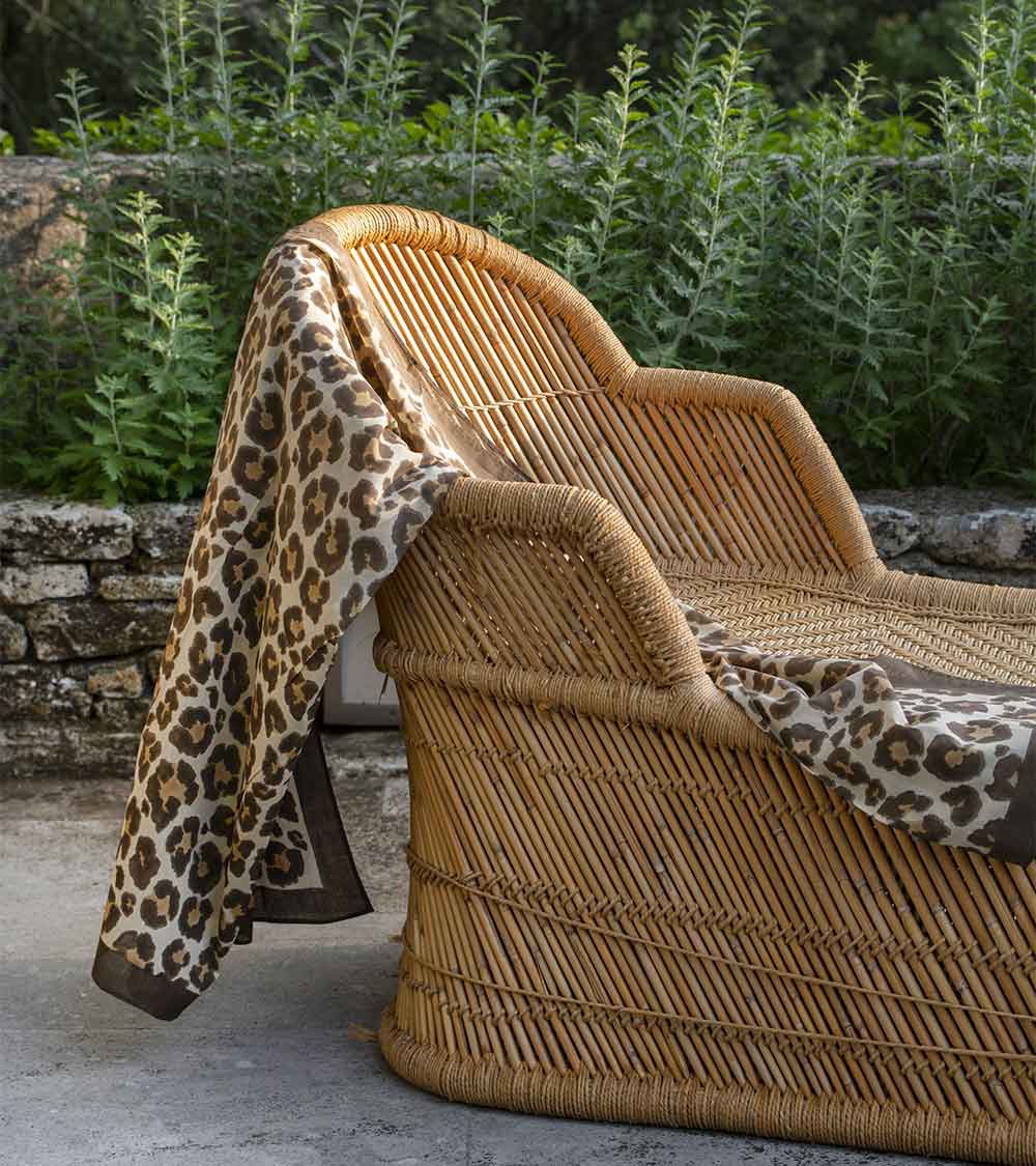 Cet été, le léopard, un des motifs iconiques de chez Casa Lopez, quitte la ville pour la plage. Le félin roi des tapis orne désormais les paréos. Ces indispensables accessoires estivaux en voile de coton se parsèment tour à tour d’un tacheté délicat aux harmonies de bleus, de verts, de bruns. Trois jolis pelages à arborer au choix sur une peau tannée et sortir de l’eau toutes griffes dehors. Élégance des détails oblige, chaque paréo est bordé d’un cadre uni, qui évoque les ganses des tapis, et structure la pièce, conférant un chic supplémentaire à leur tombé parfait.