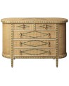 Avec sa découpe ovale et son galbe tout en finesse, cette commode librement inspirée du mobilier vintage des sixties tardives, est entièrement fabriquée à la main en Espagne. Faisant la part belle au travail du rotin, elle mélange les couleurs à l’envie et s’habille aussi en sur mesure. Pratique avec sa volée de tiroirs, elle joue les combinaisons gagnantes qu’on la place dans une salle de bains, une chambre ou en guise de console dans une entrée. Un esprit nomade et aérien qui fonctionne en ville comme à la campagne.