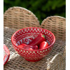 Ce contenant en faïence ibérique, peint à la main, est proposé dans des harmonies bleu lapis et vert tendre avec un motif d’oiseau niché dans un entrelac végétal sur fond blanc gris. Joli et utile à la fois, il permet de servir à table tomates, radis, petites sauces, ou de garder quelques restes au réfrigérateur.