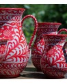 Trois tailles pour ces brocs à eau en faïence ibérique peints à la main dans les mêmes harmonies et selon le même motif bleu profond et vert tendre que les services d’assiettes. Ces contenants plein de charme peuvent également convenir pour le lait, voire même dans une cuisine de campagne pour y glisser quelques fleurs des champs.
