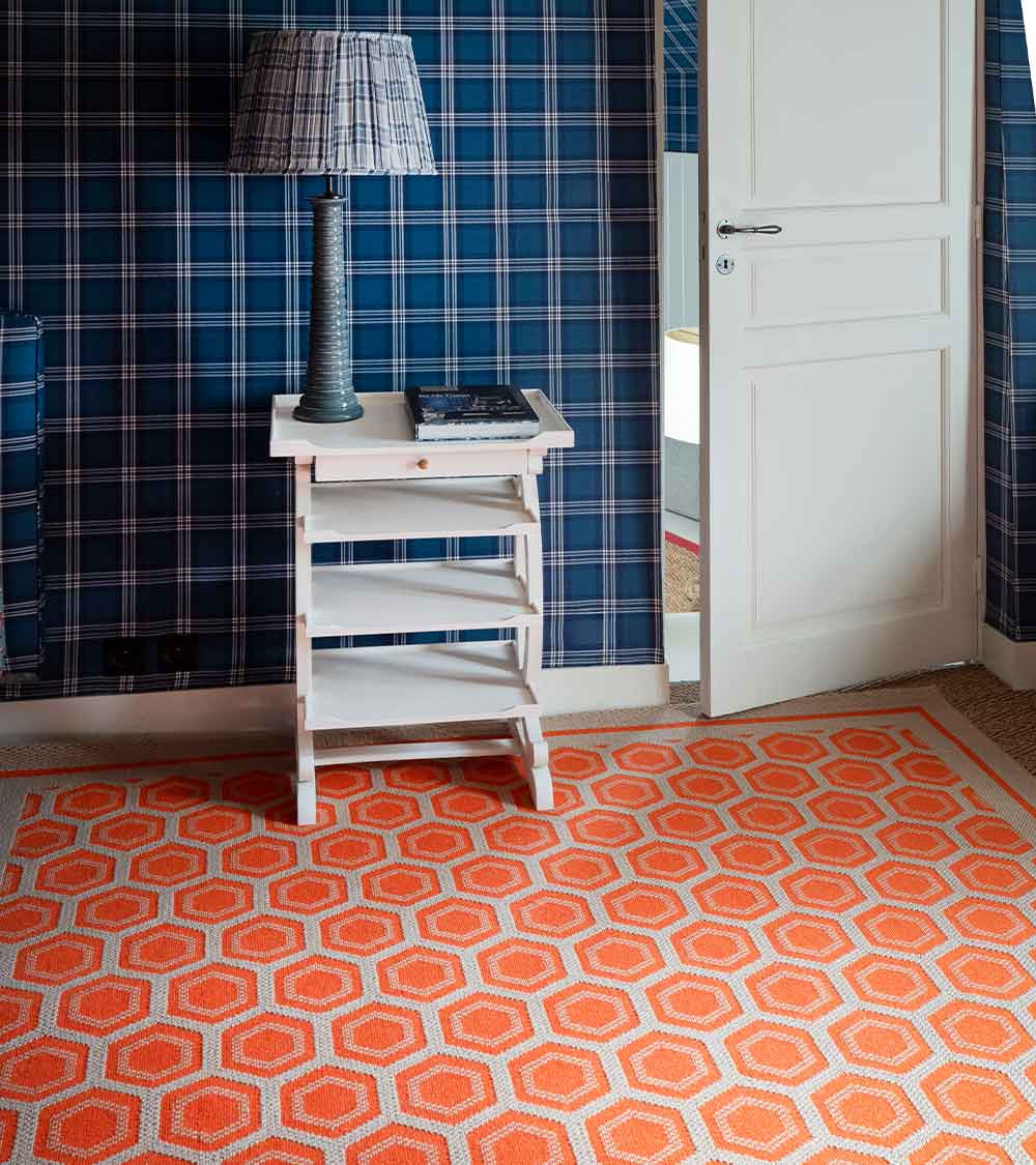 Inspiré du dessin des ruches ou des tomettes de Provence, ce tapis en laine au tissage régulier et très serré est à la fois classique et très contemporain. Avec son côté 70’, ce tapis proposé en bleu et beige, existe en quatre tailles. Il est suffisamment sobre pour coller à toutes sortes d’ambiances.