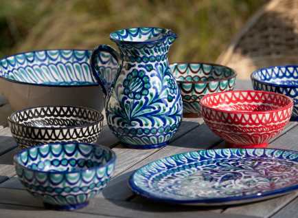 Casa Lopez revisite la tradition avec cette vaisselle marbrée, en “terre mêlée”, issue d’une technique rare et précieuse du XVIIIè siècle. Fabriquées en Provence, ces assiettes à pain sont faites à la main et produites uniquement sur commande. Elles existent dans des coloris acidulés totalement inédits – jaune et mandarine – soulignées d’un trait contrasté mais aussi en vert, avec une découpe « grand siècle », toutes signées du paraphe de l’artisan.