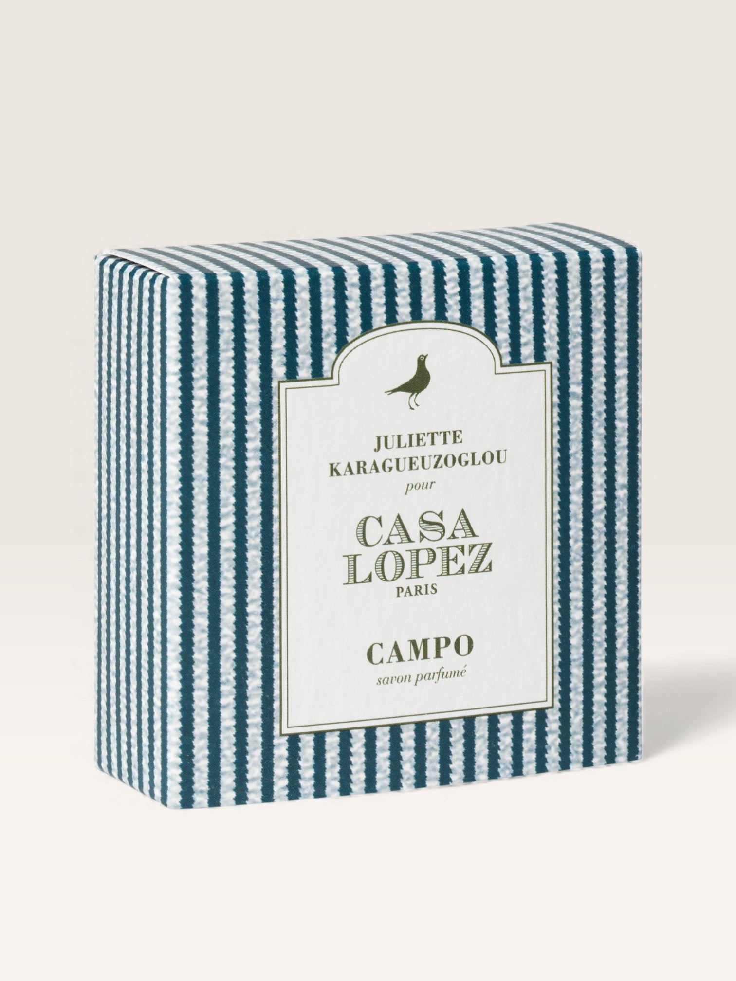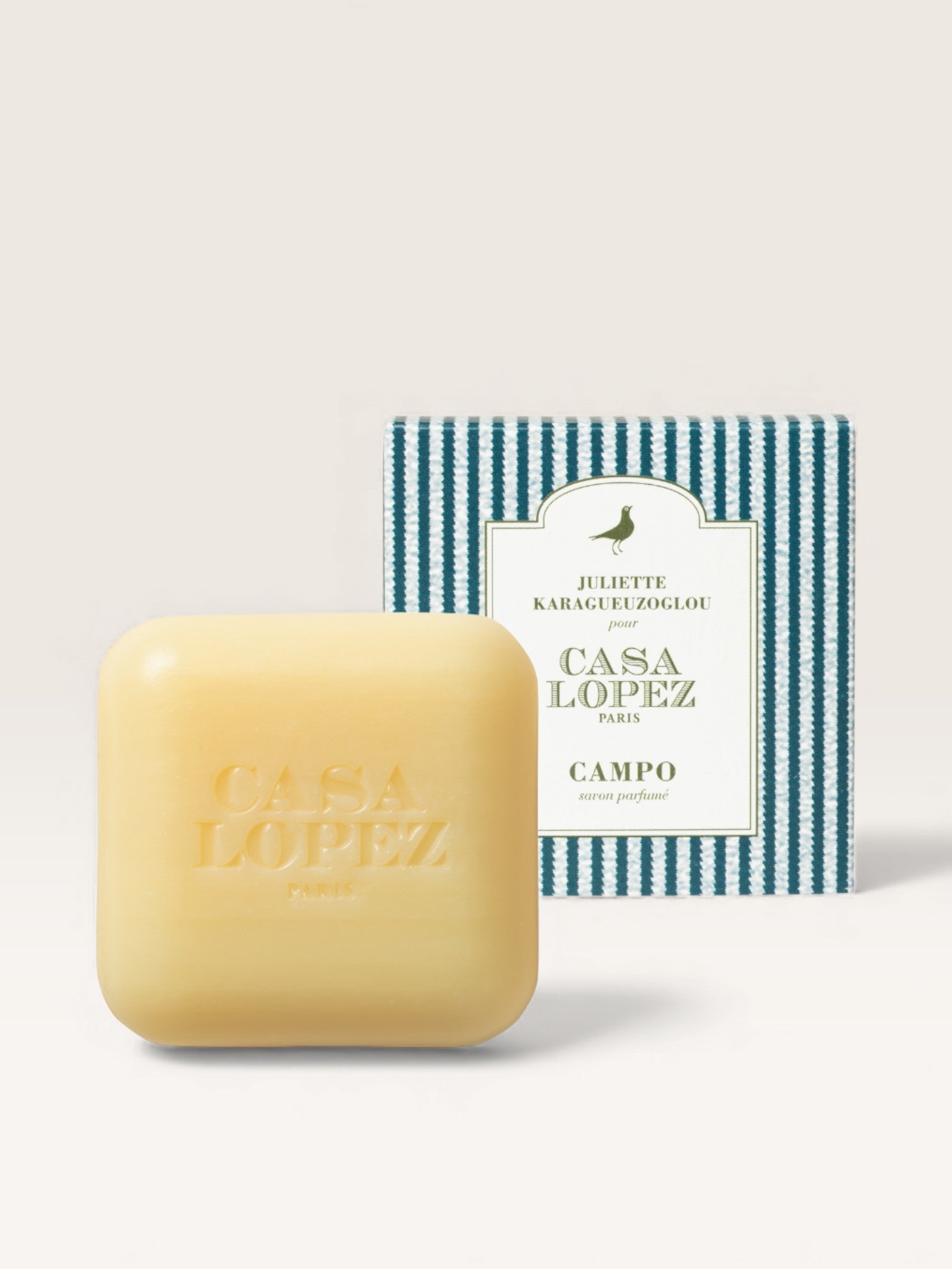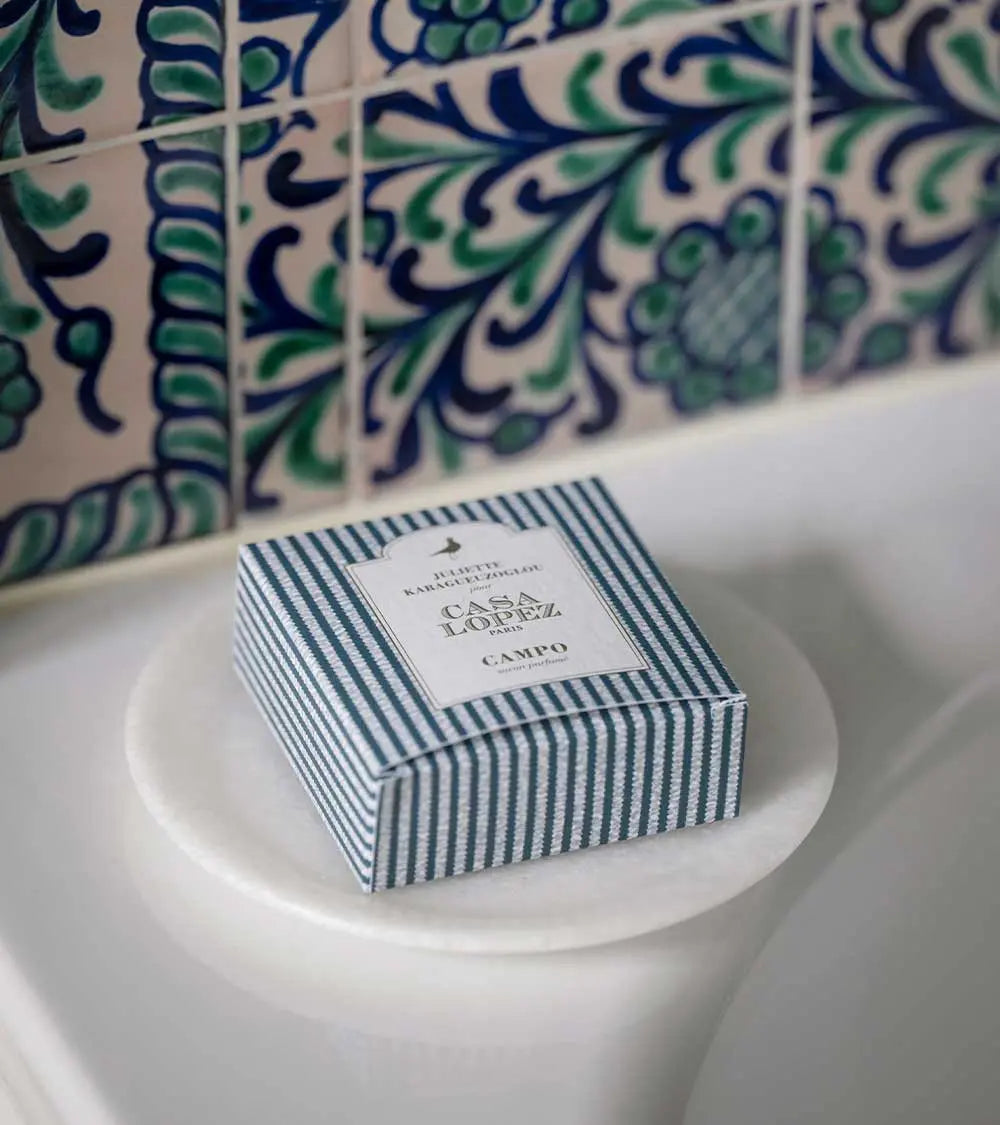 Pour Campo, Juliette Karagueuzoglou, nez dont la vocation olfactive remonte à l’enfance, a imaginé « une création originale qui met à l’honneur un jardin à la campagne ». Pour créer ce parfum, elle a pensé à une haie bordant un jardin sur laquelle seraient entremêlées toutes sortes de fleurs champêtres, balayées par l’air frais d’un matin de printemps. Le savon éponyme apportera joie et fraîcheur à celui qui l’humera comme à celui qui l’utilisera.