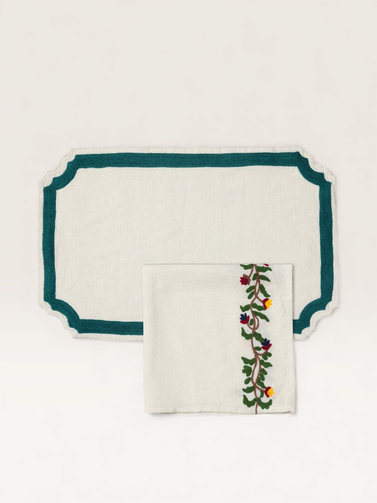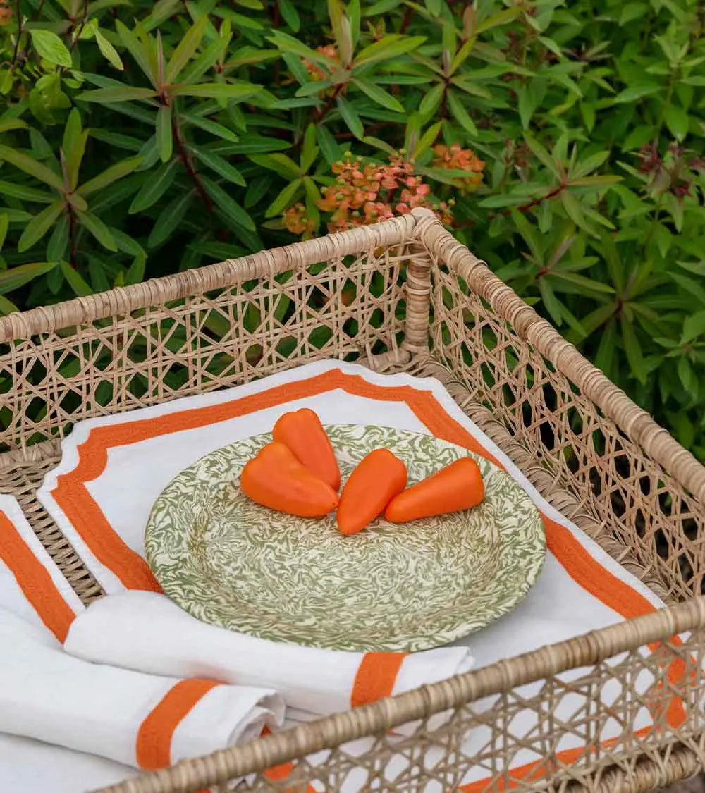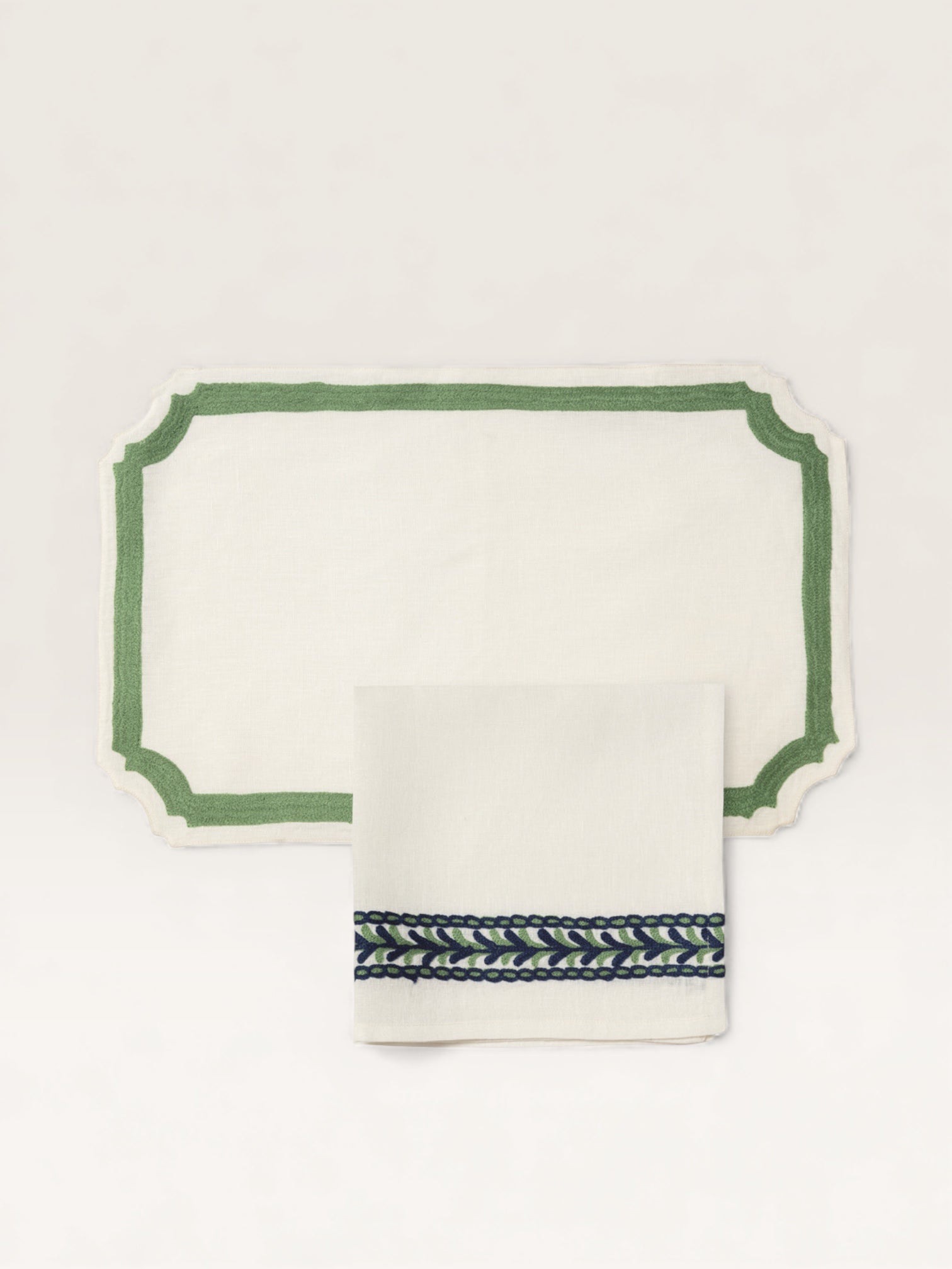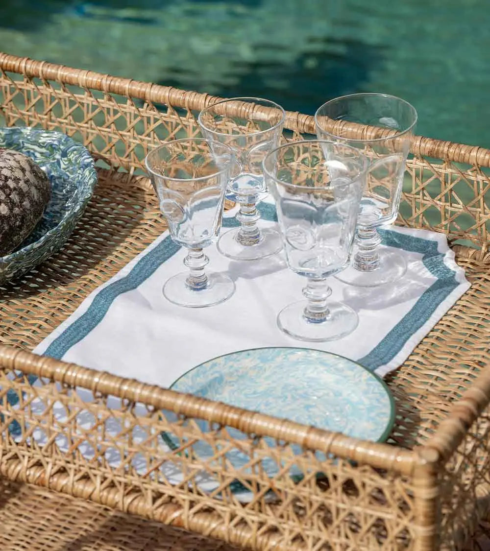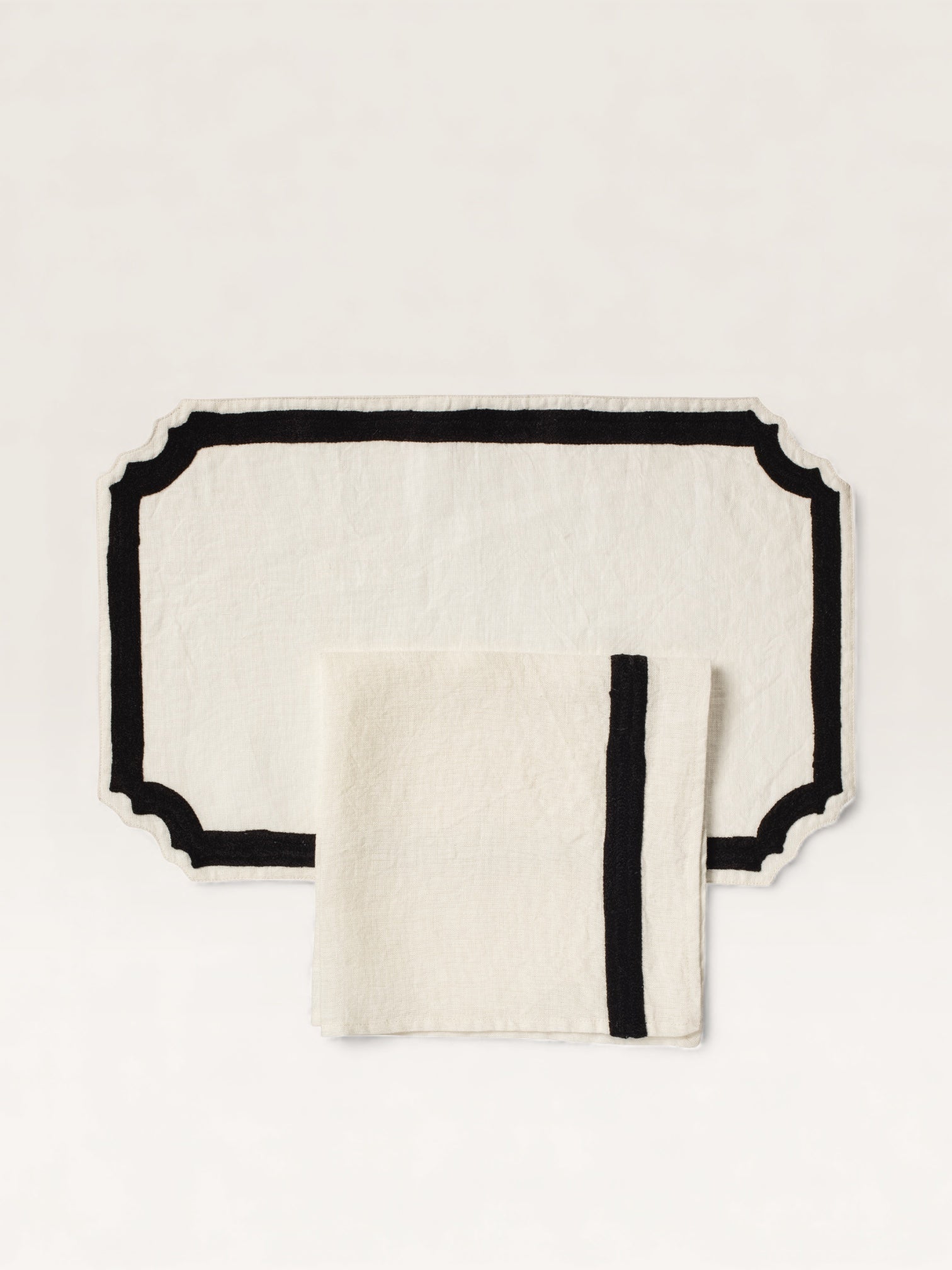 C’est la beauté du linge ancien et des draps lourds de nos grands-mères qui inspire cette collection de sets et serviettes de table brodés laine. Découpés dans un lin naturel magnifique, décorés d’un cadre marine ou rose fluo, ils sont accompagnés de larges serviettes brodées d’une ligne de couleur. On les choisit dans les deux tonalités pour les mélanger à l’envie. Et pour créer une ambiance de table contrastée, on les mixe à des assiettes motifs oiseaux noirs ou bleus.