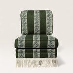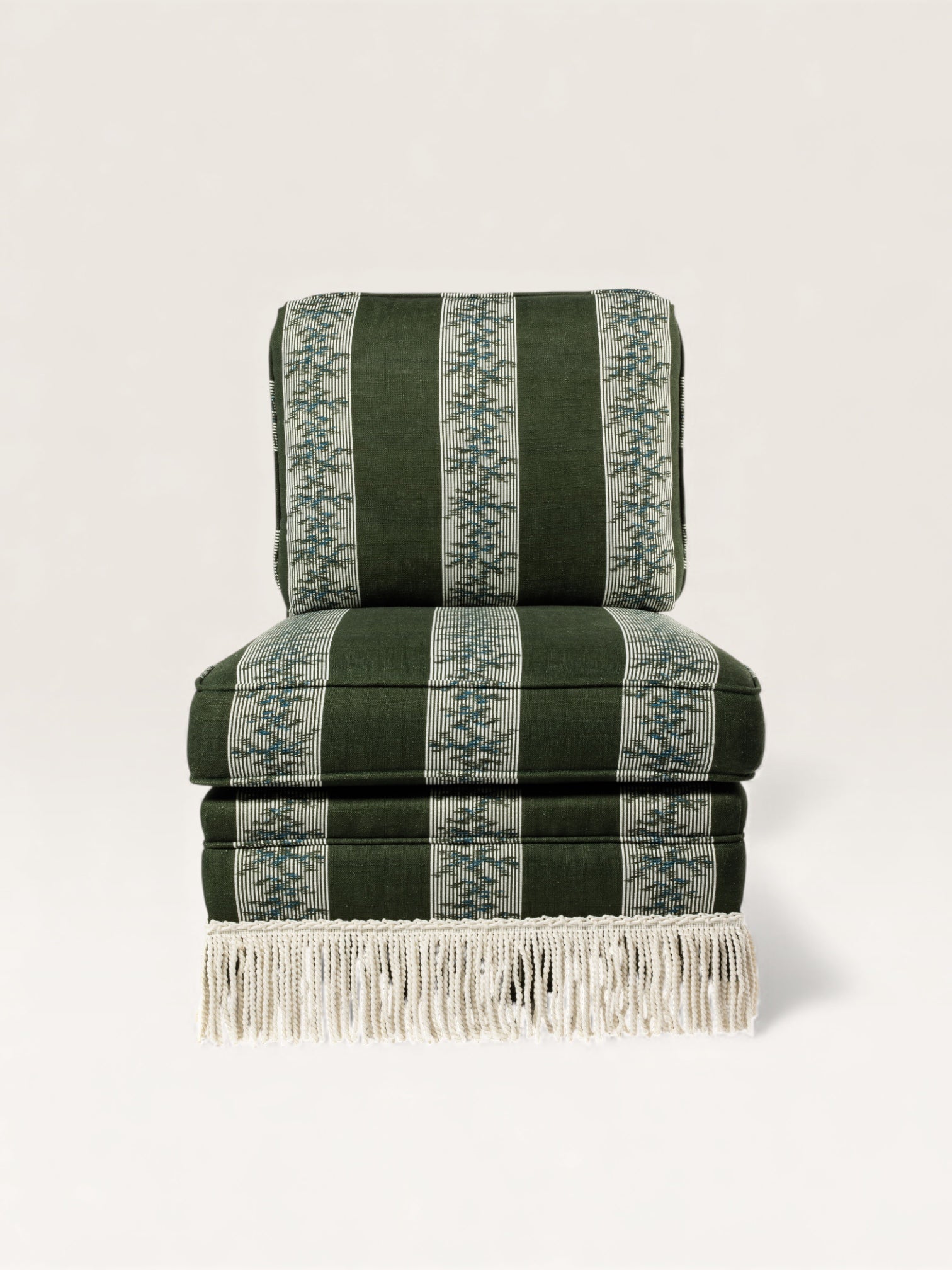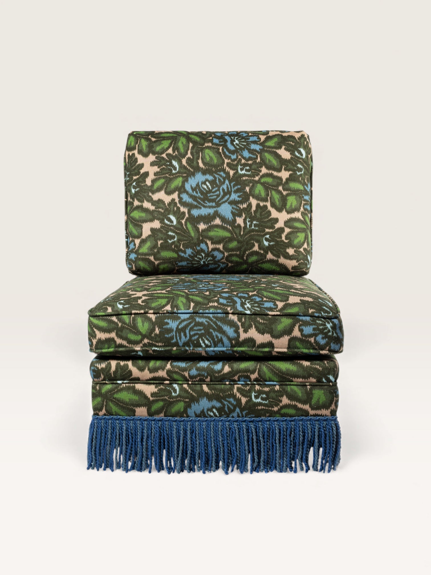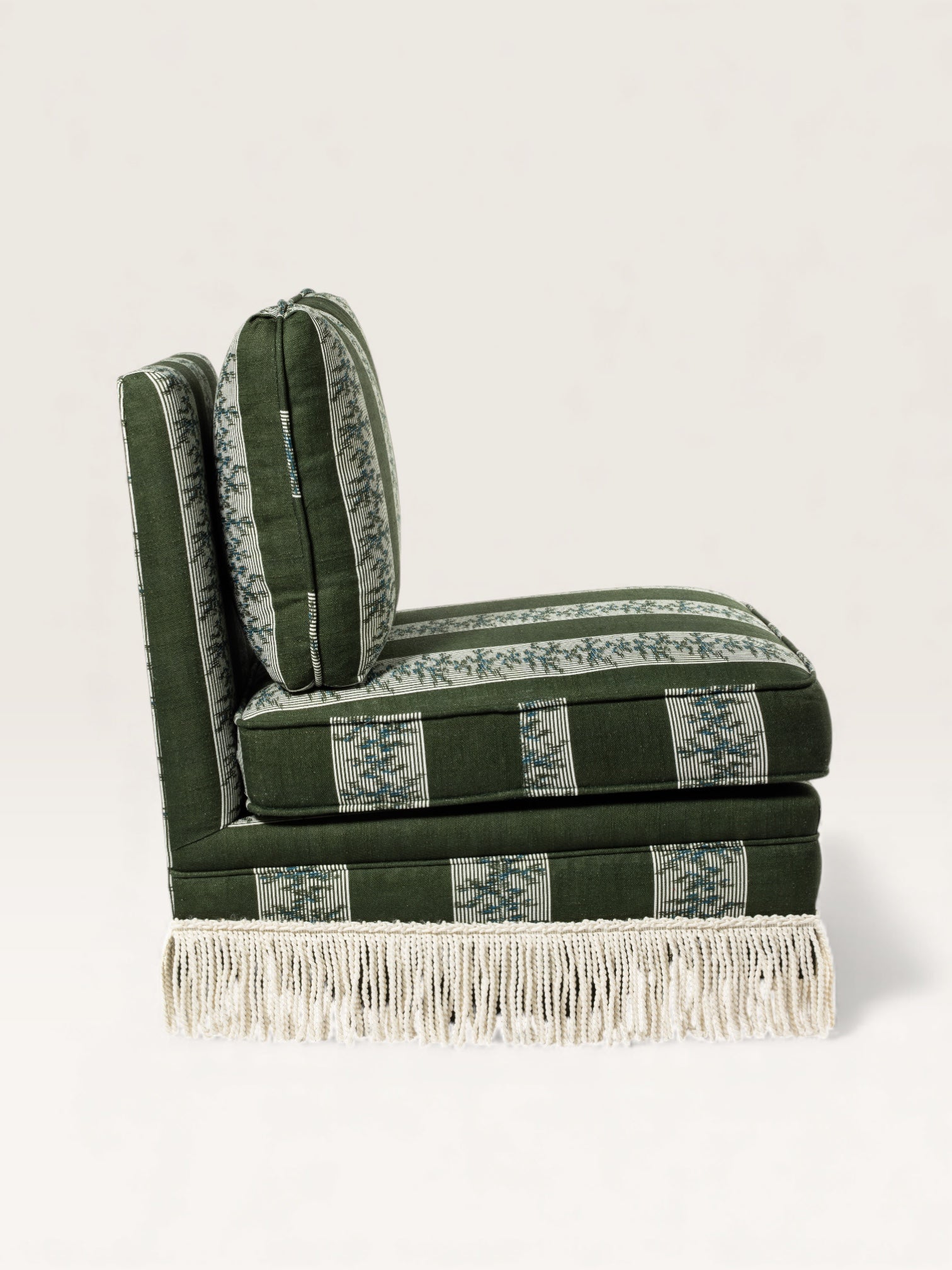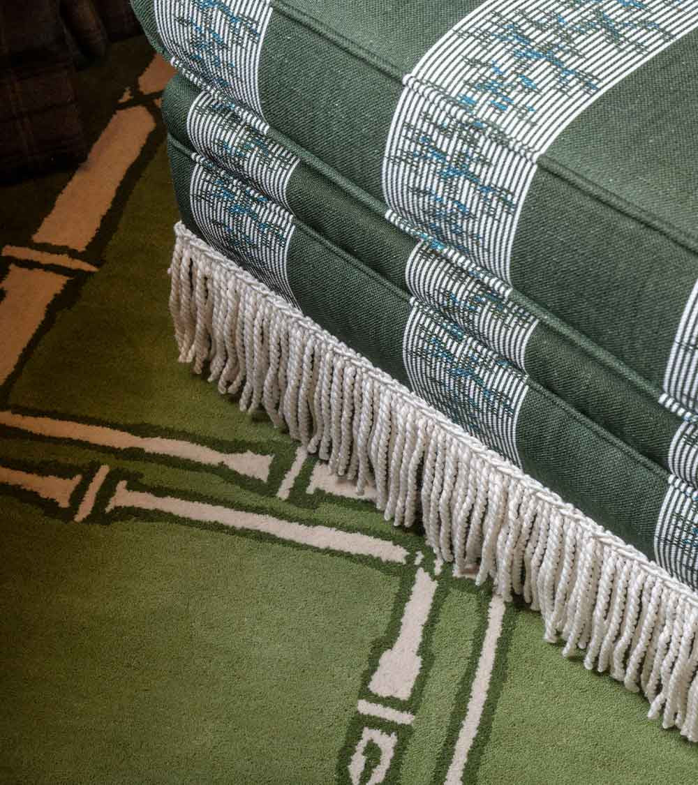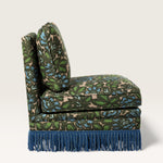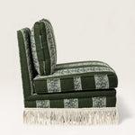Fabriquée en Espagne sur mesure, cette chauffeuse pivotante s’adapte à toutes les occasions — dans une chambre, un bureau ou un salon, seule ou en duo. Avec ou sans franges, elle se commande dans le tissu de votre choix.