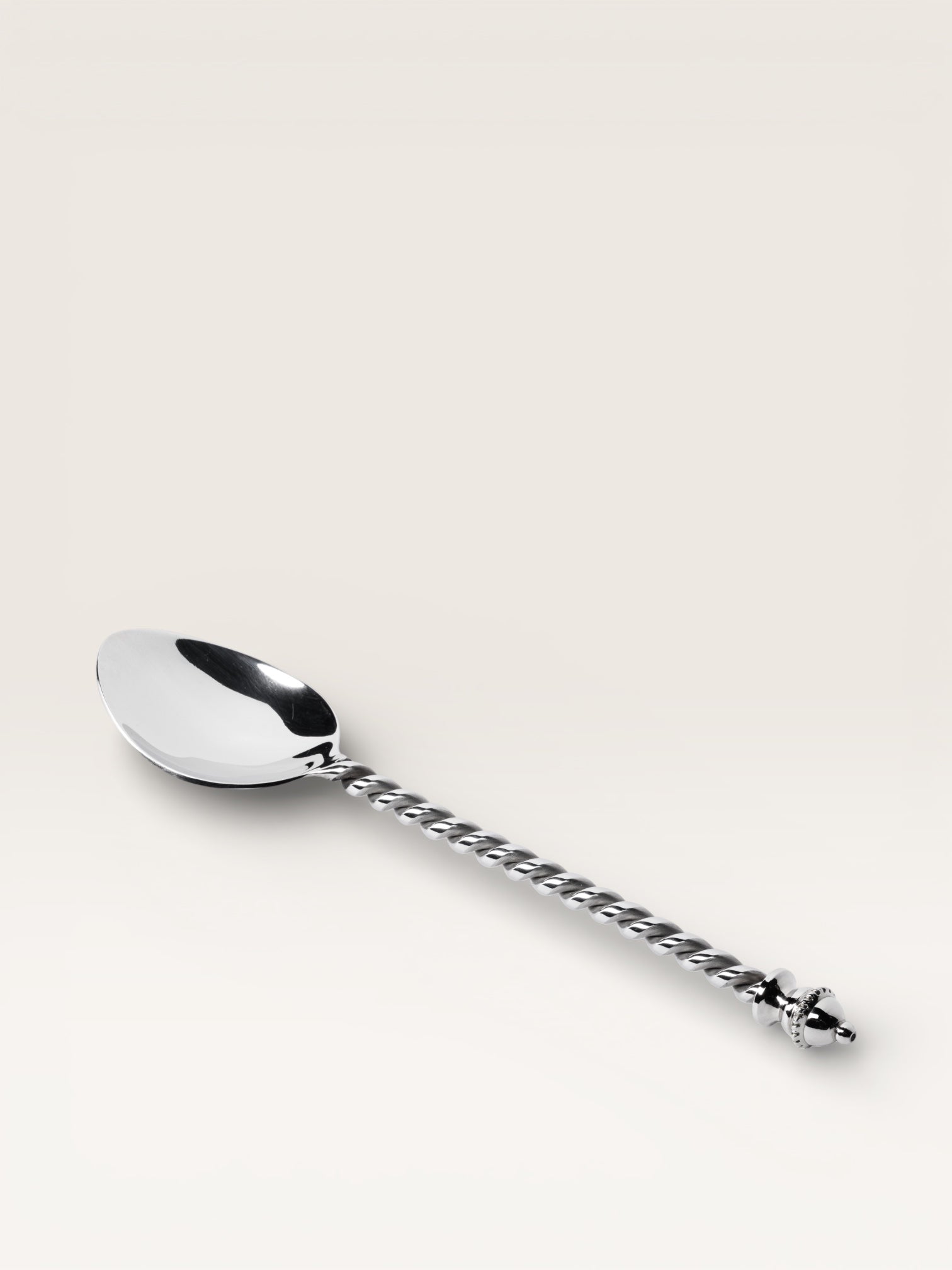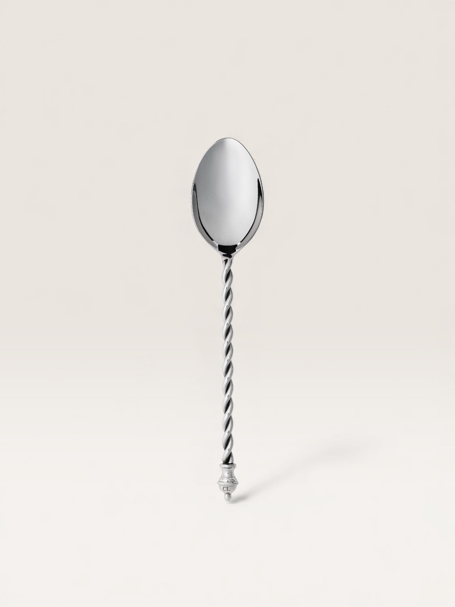 This first series of tinplate cutlery, specially designed by Pierre Sauvage to complement the Casa Lopez tableware, embodies the very spirit of the brand: a subtle yet undeniable blend of simplicity and sophistication. Featuring handles reminiscent of twisted silver spaghetti, these pieces, designed to be neither too heavy nor too light, ensure a comfortable grip for diners. Exclusively available in silver, they come in several versions: teaspoons, dessert cutlery, and dinner cutlery. Apart from the salad and serving pieces, the spoons, forks, and knives in this set are sold individually and are, of course, dishwasher safe. Already a classic, it graces tables both near and far, accompanying all four seasons.