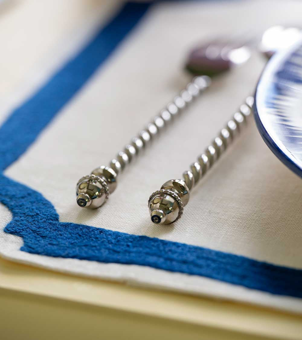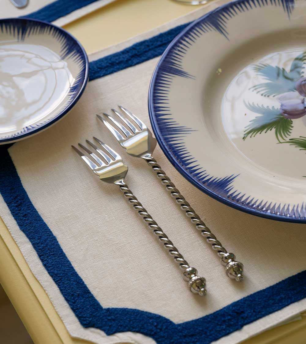 This first series of tinplate cutlery, specially designed by Pierre Sauvage to complement the Casa Lopez tableware, embodies the very spirit of the brand: a subtle yet undeniable blend of simplicity and sophistication. Featuring handles reminiscent of twisted silver spaghetti, these pieces, designed to be neither too heavy nor too light, ensure a comfortable grip for diners. Exclusively available in silver, they come in several versions: teaspoons, dessert cutlery, and dinner cutlery. Apart from the salad and serving pieces, the spoons, forks, and knives in this set are sold individually and are, of course, dishwasher safe. Already a classic, it graces tables both near and far, accompanying all four seasons.