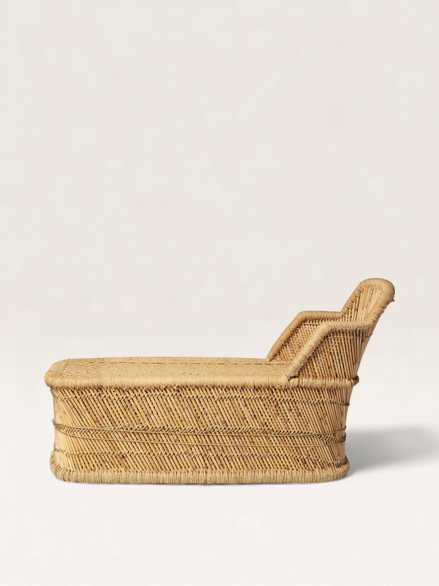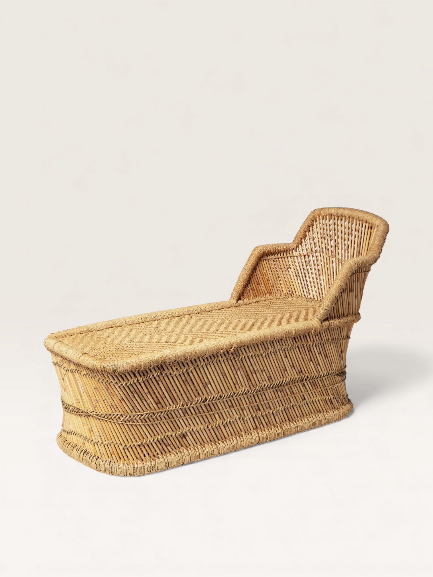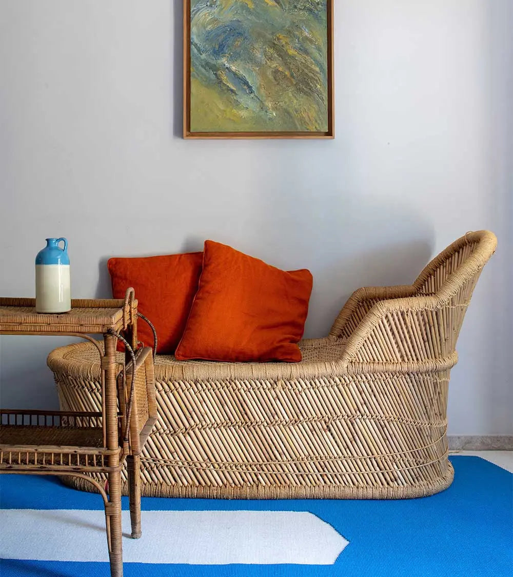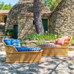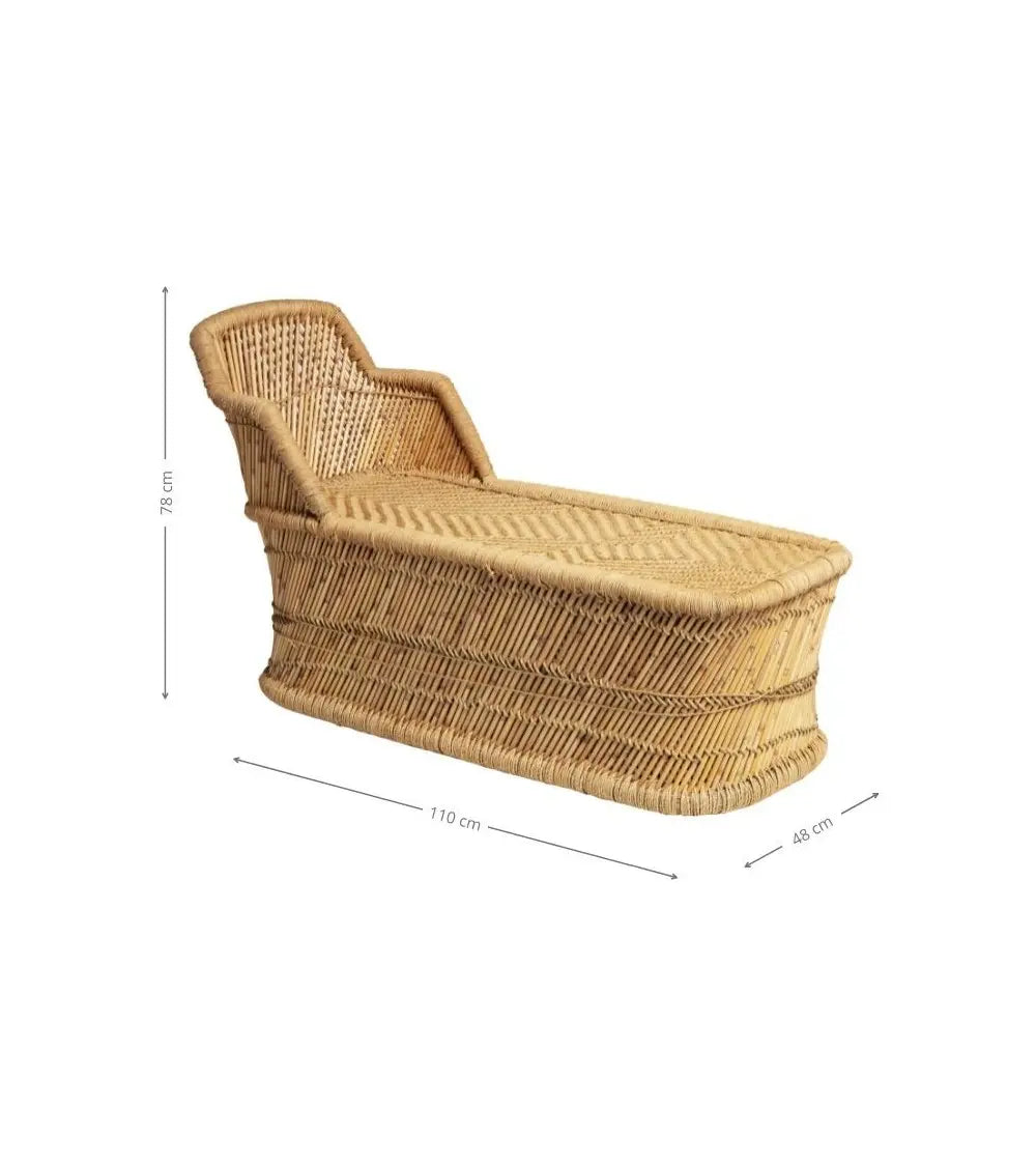 A divine invitation to a nap, this chaise longue, crafted in India using traditional basketry techniques, is the perfect seat for terraces and awnings. Covered with cushions, it can also be imagined in a bedroom or small living room, creating a country-chic urban feel or a chic studio vibe, with a touch of bohemian style perhaps adorned with a Matisse-esque scarf.