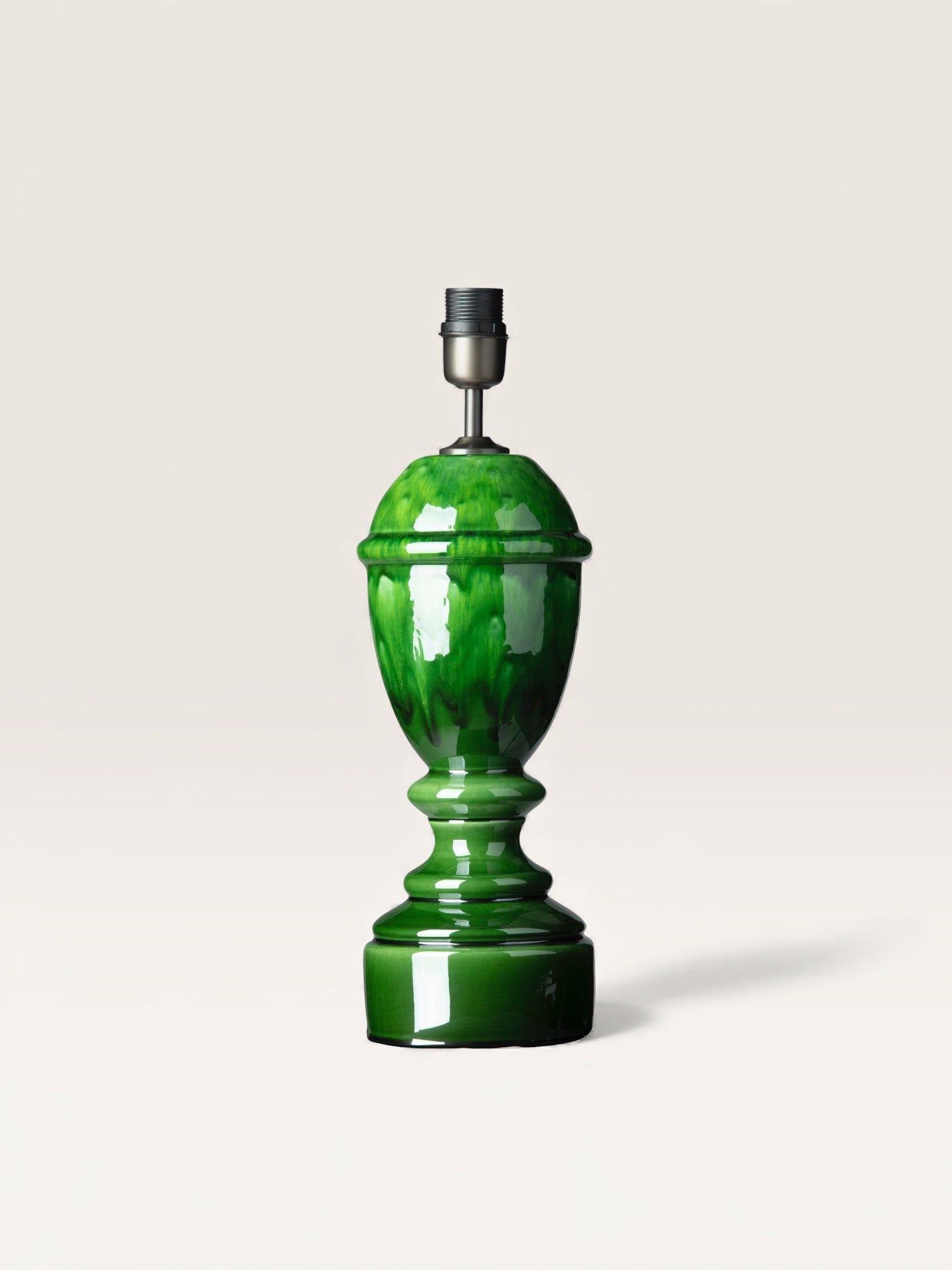 Indirect lighting creates a consistently intimate and soft ambiance. This handcrafted, glazed terracotta lamp base, available in black, ecru, royal blue, green, and navy, makes it easy to pair it with a plain or patterned lampshade. Choose the shade that best suits your room's decor or purpose to create the perfect lighting effect.