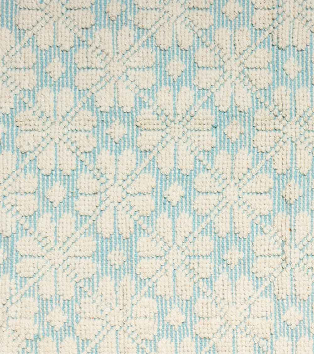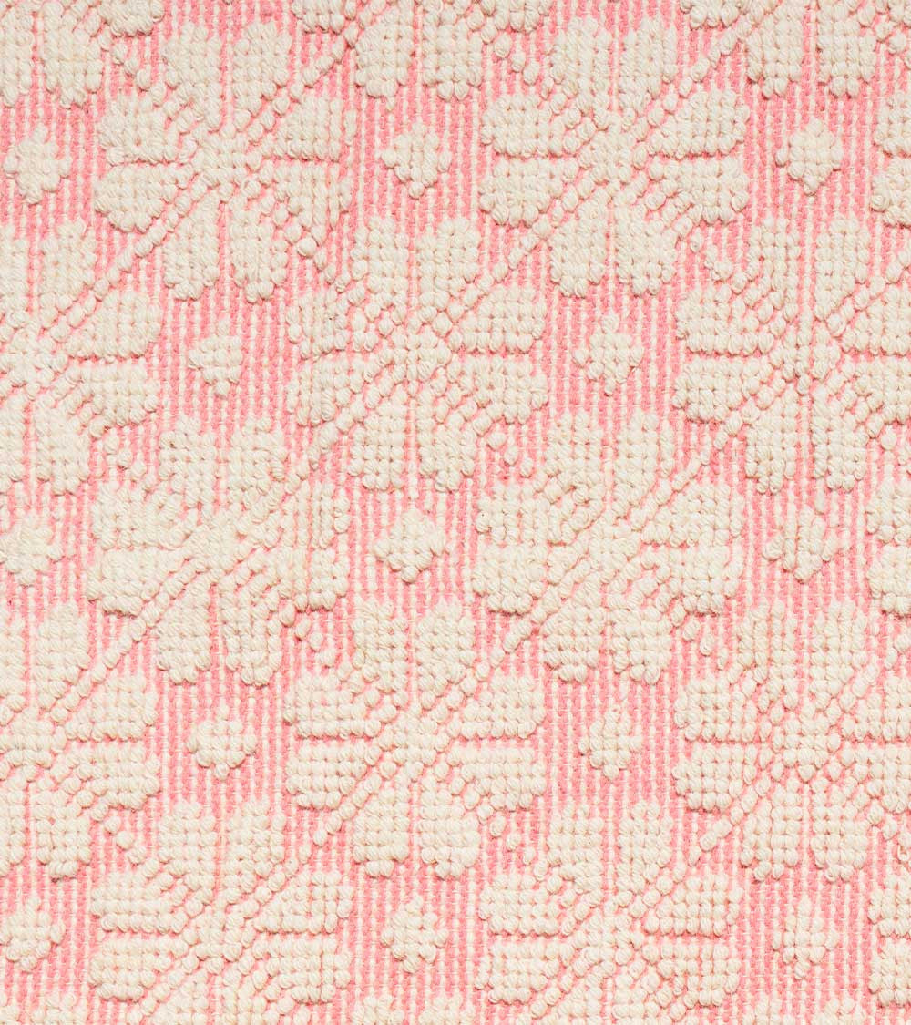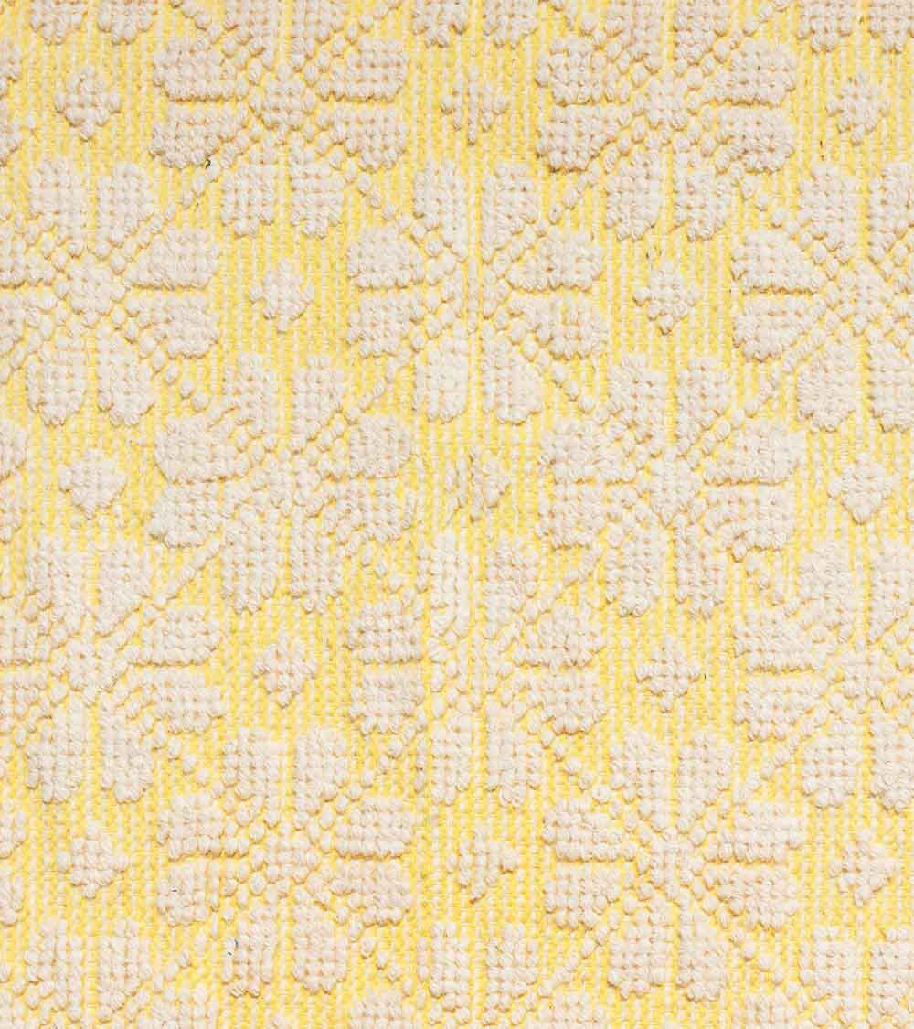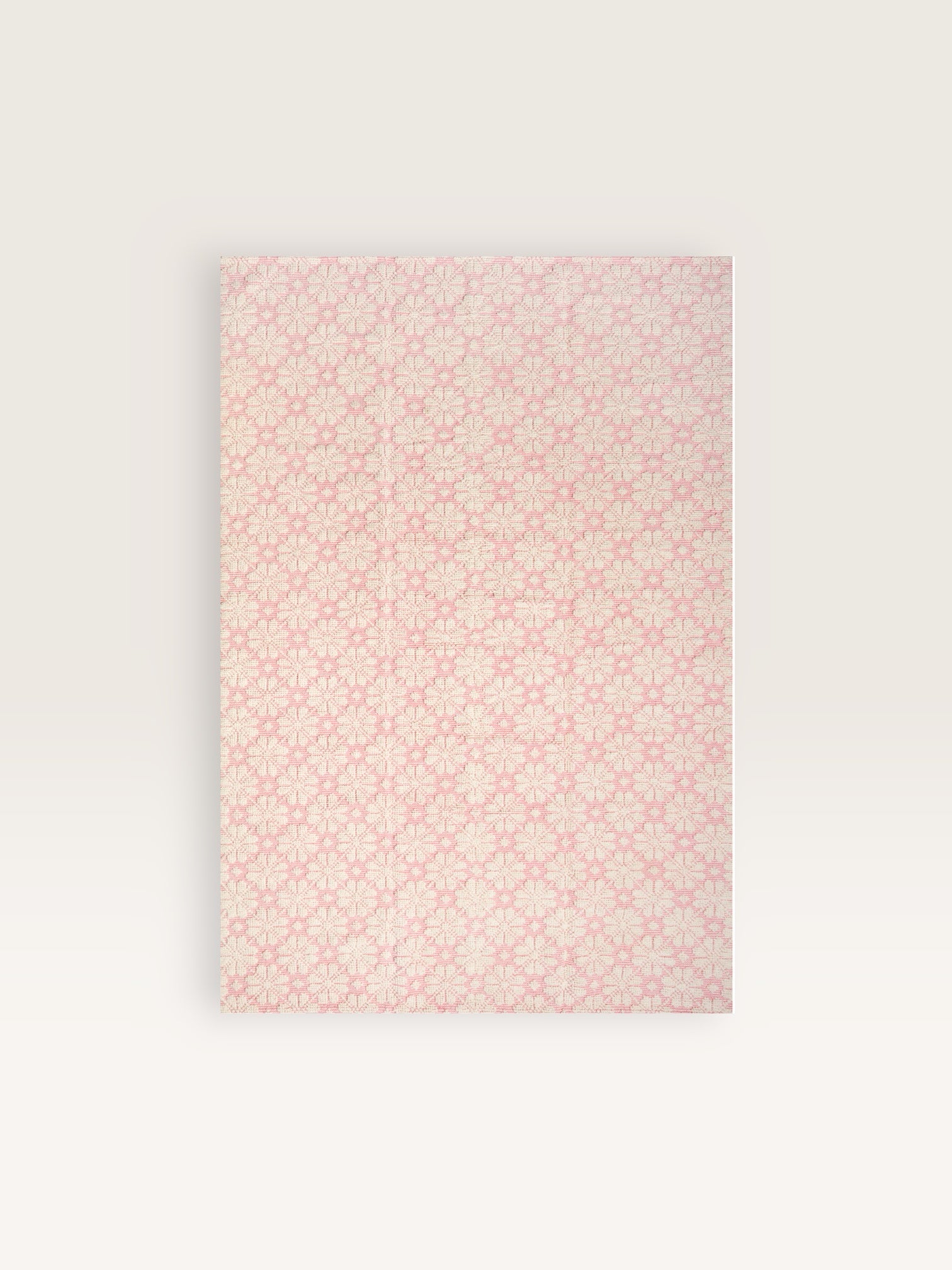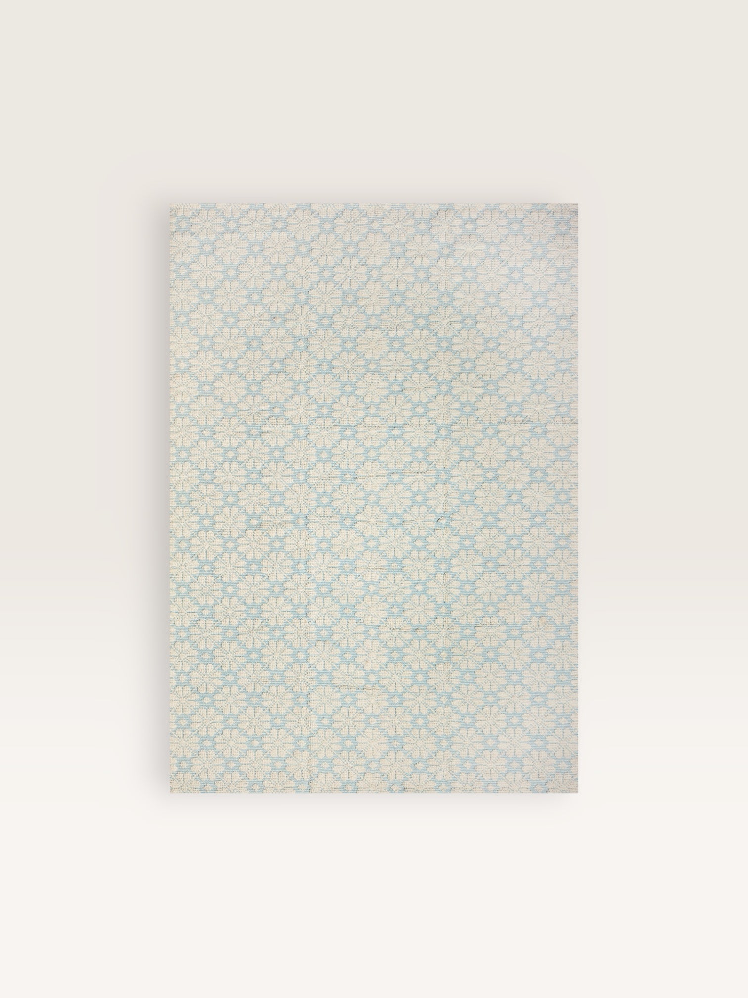 The freshness of a rug with a stylized daisy motif. This charming floral design alternates cabochons, repeating across the entire surface. This wool rug, woven on a handloom, offers a texture that gives it the distinctive feel of handcrafted rugs. Available in one size, 200x300cm, it can be ordered in the color of your choice. This classic rug with its elegant look is suitable for all occasions: coordinate it with the colors of a bedroom, place it in an office, or in a lovely summer living room.