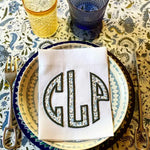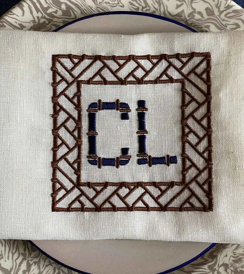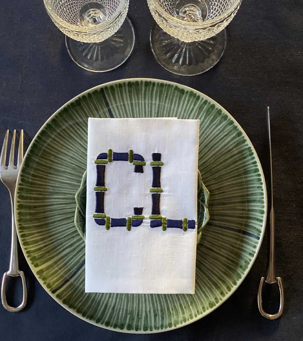 Nothing is more personal than personalized napkins. Casa Lopez offers a generously sized napkin in two linen colors (white or two-tone) that can be made to order…