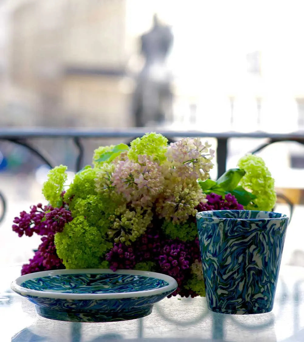 Casa Lopez reinterprets tradition with this marbled tableware, made of "mixed clay," using a rare and precious 18th-century technique. Crafted in Provence, these bread plates are handmade and produced only to order. They are available in entirely new, vibrant colors – yellow and tangerine – highlighted with a contrasting line, as well as in green, with a "grand siècle" cut, all bearing the artisan's signature.