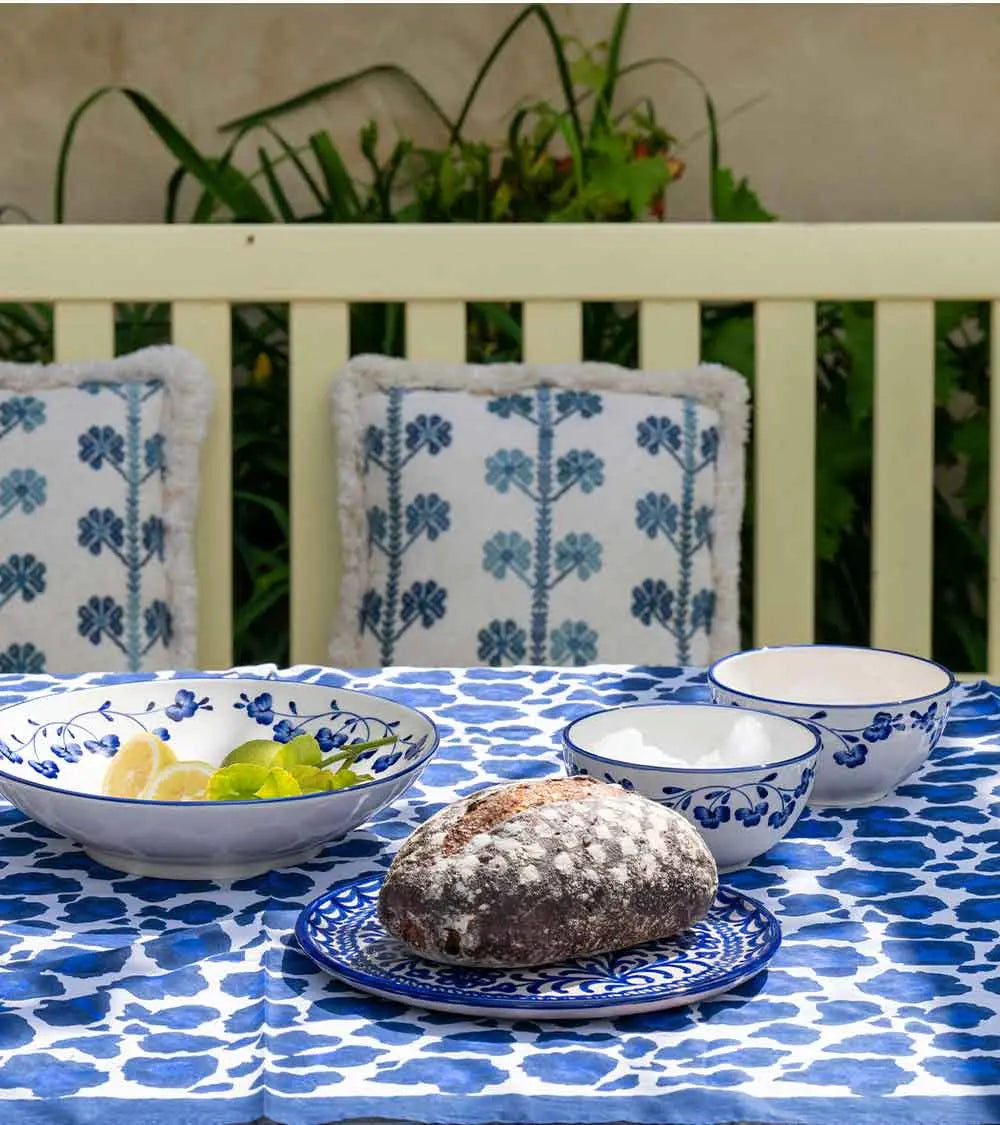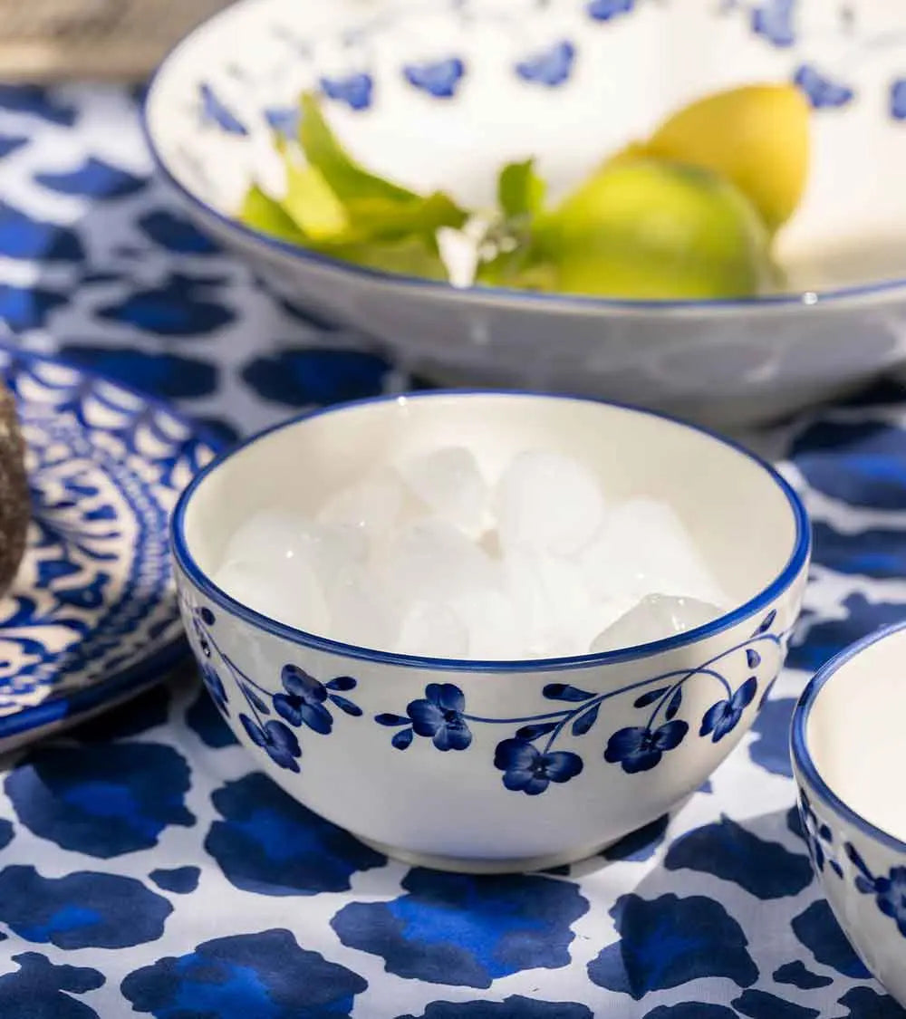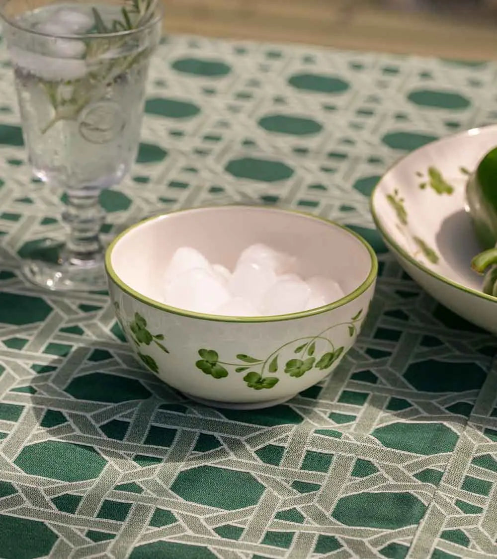 This hand-painted earthenware bowl, decorated with a garland of stylized four-leaf clovers, is part of a lucky charm collection. It's quite versatile, serving multiple purposes: it can be used to serve breakfast cereal as well as evening soup.