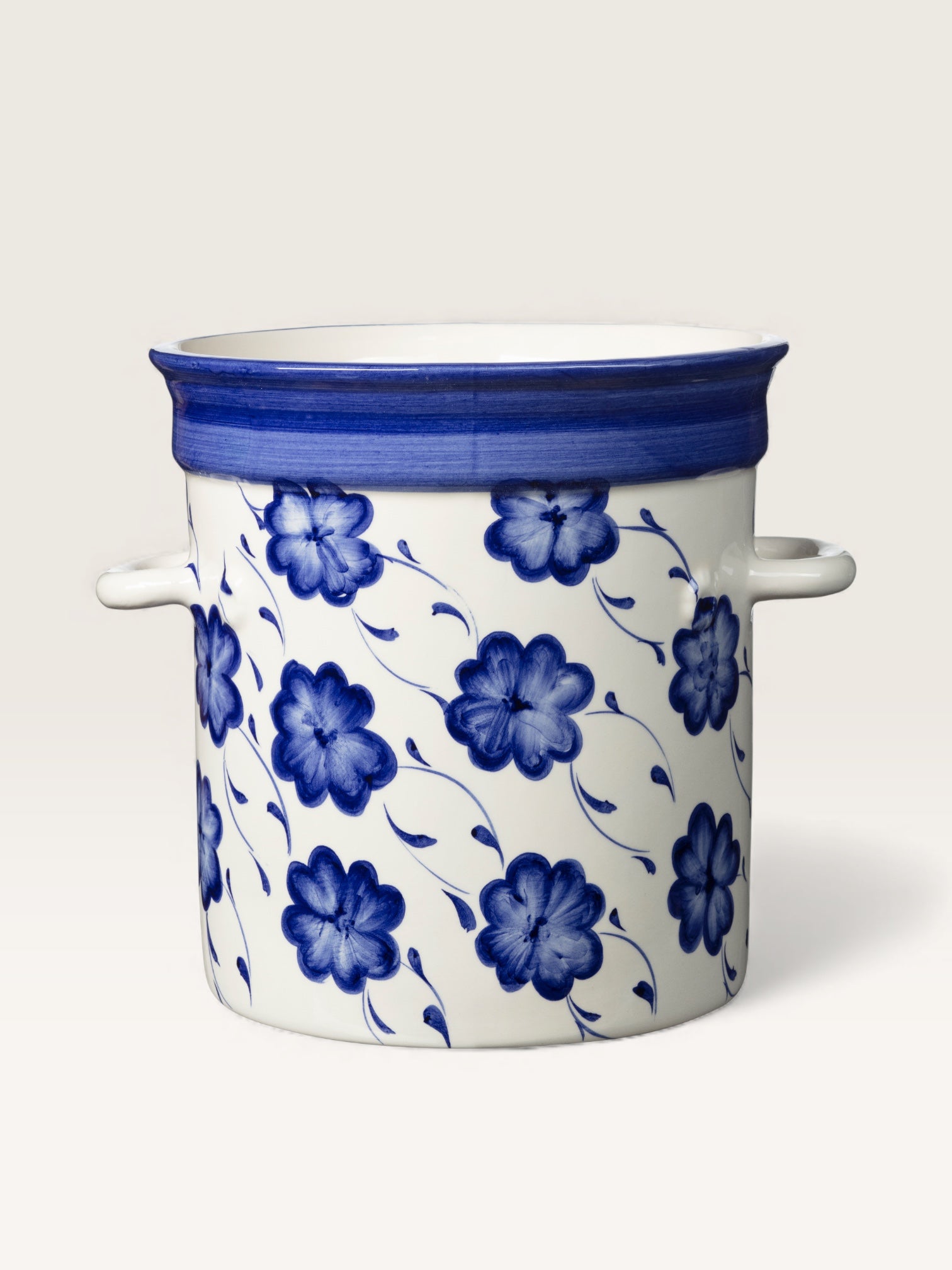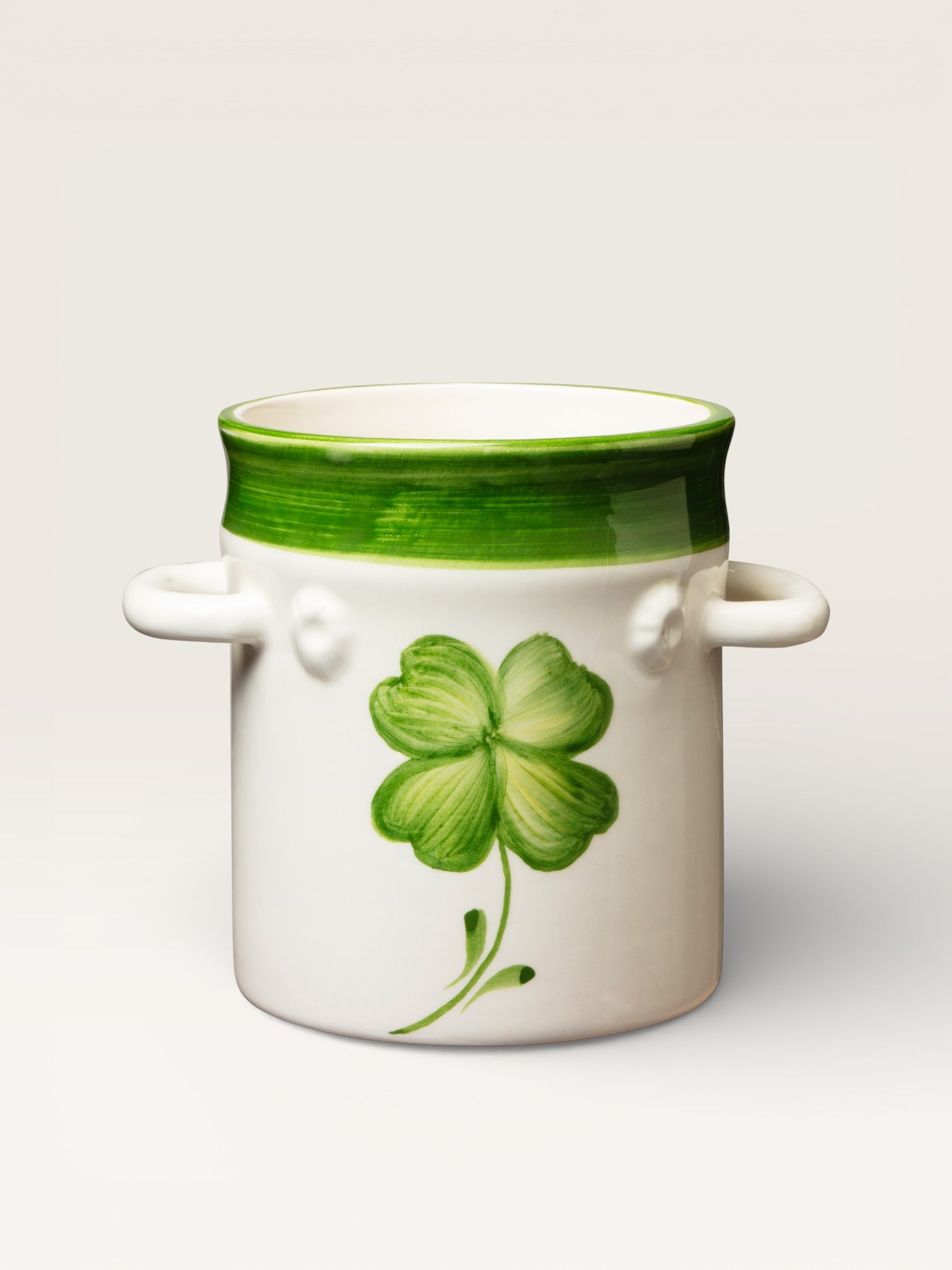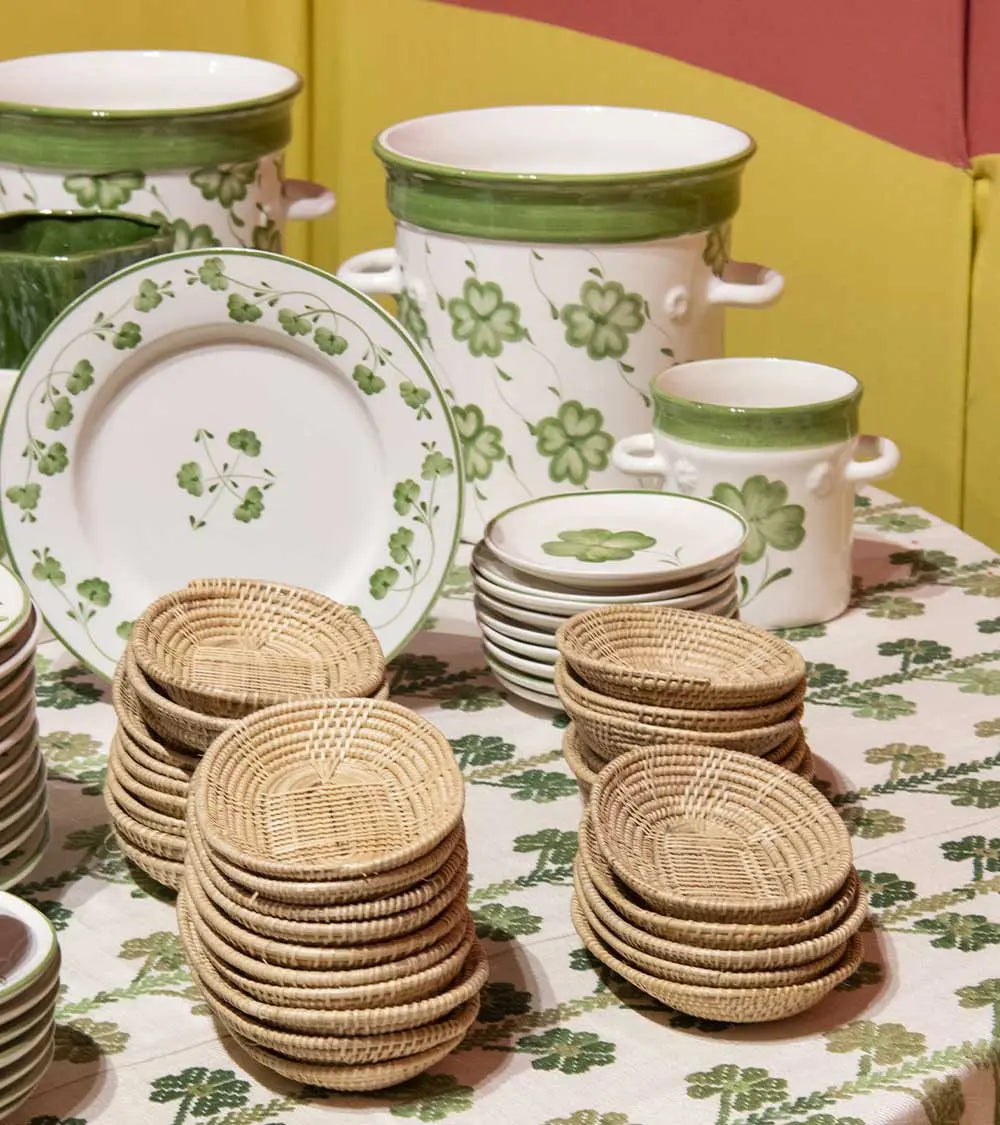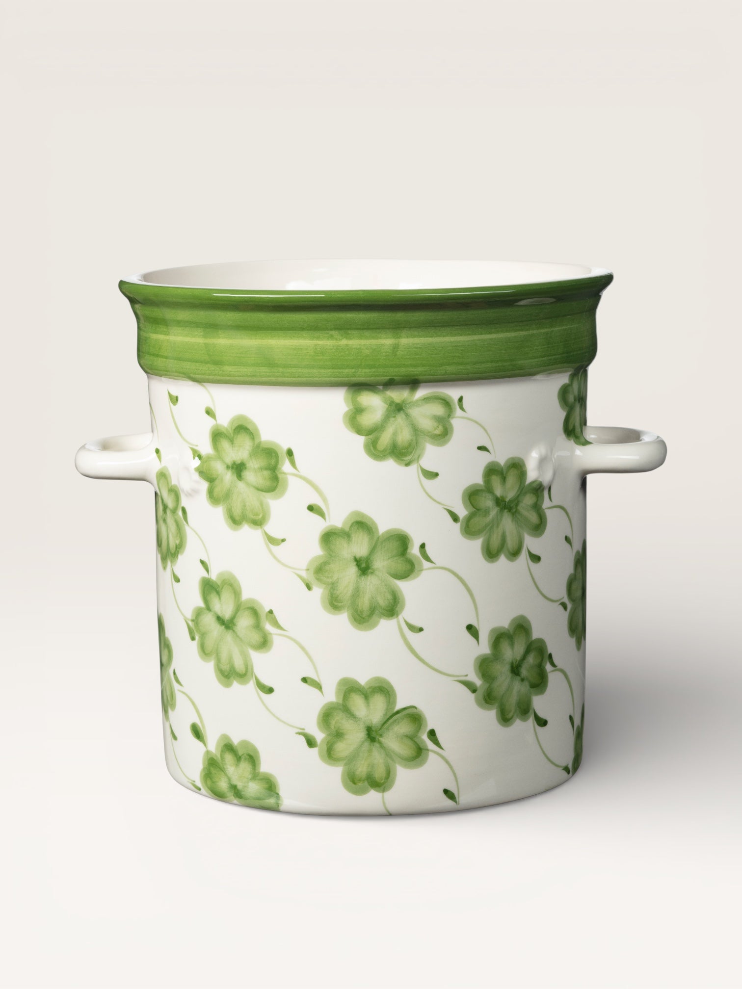 A blue or green lucky charm is the main motif on this hand-painted earthenware ice bucket from Portugal. With its abundance of clovers, this charming container seems destined to hold bottles for toasts and, above all, for making wishes!