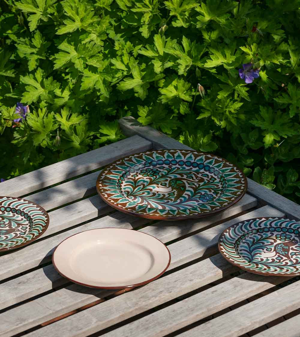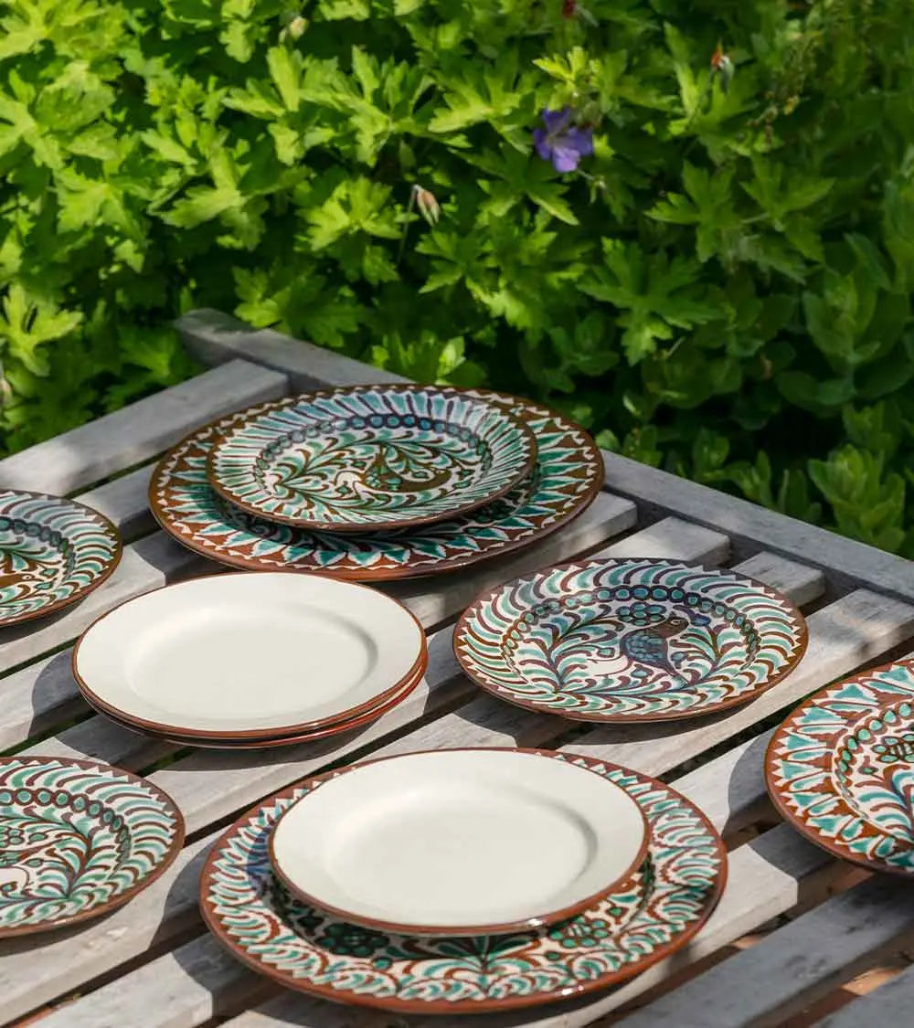 These are the classic plates used at the table to serve all kinds of dishes. They are also popular in the garden where, placed on a sideboard, they can hold savory tarts and various salads.