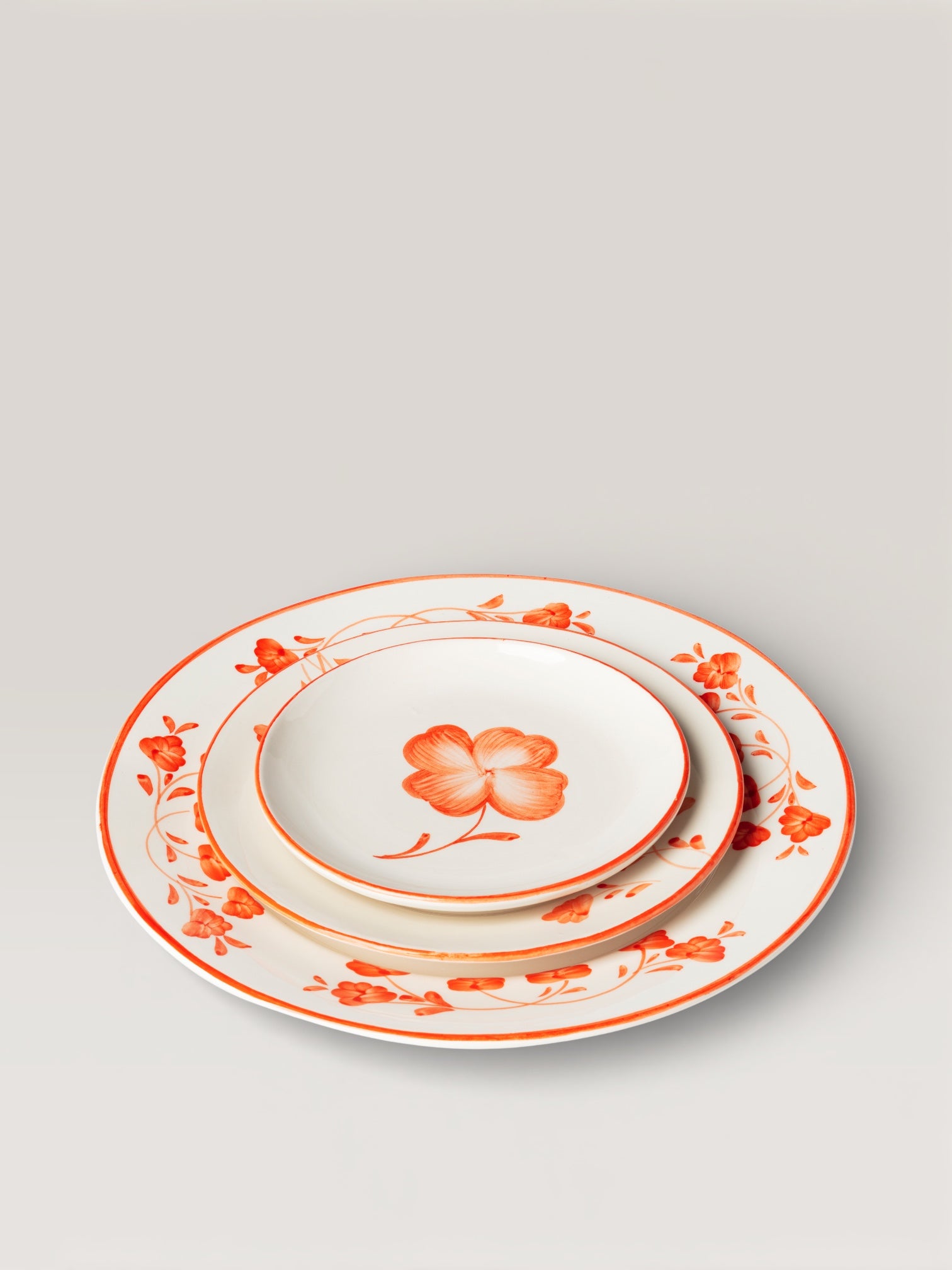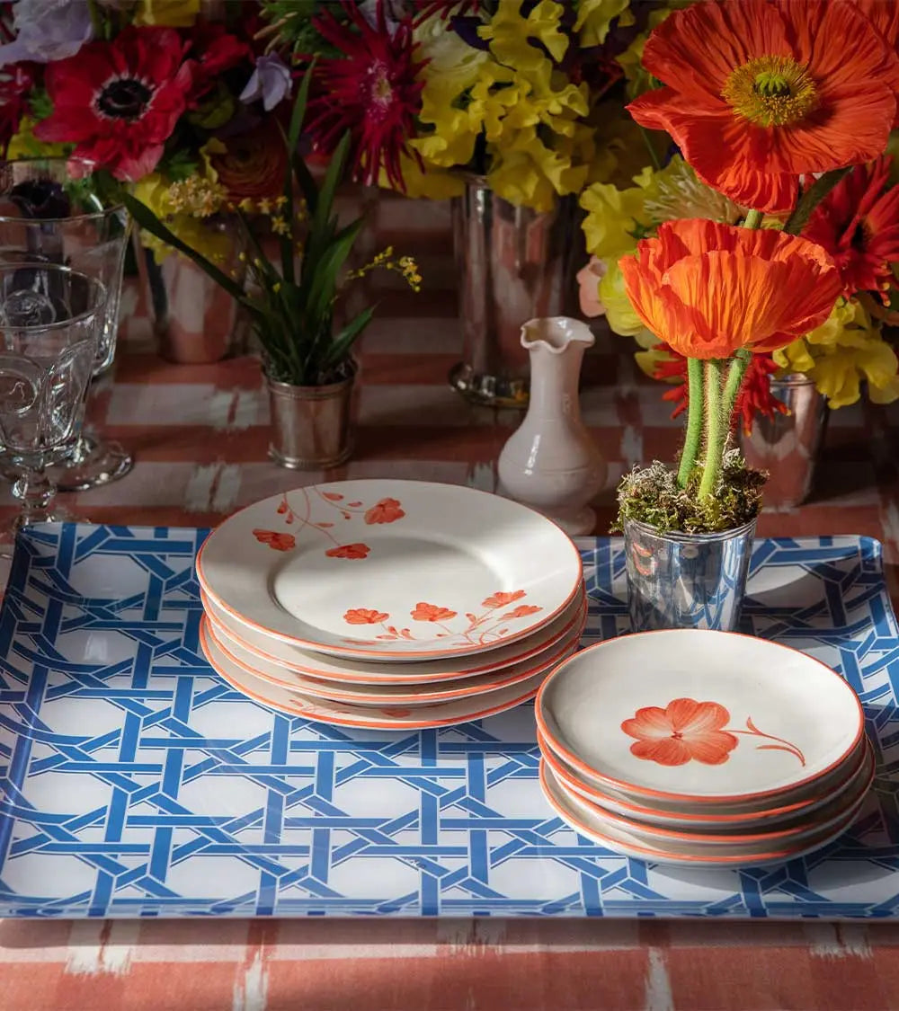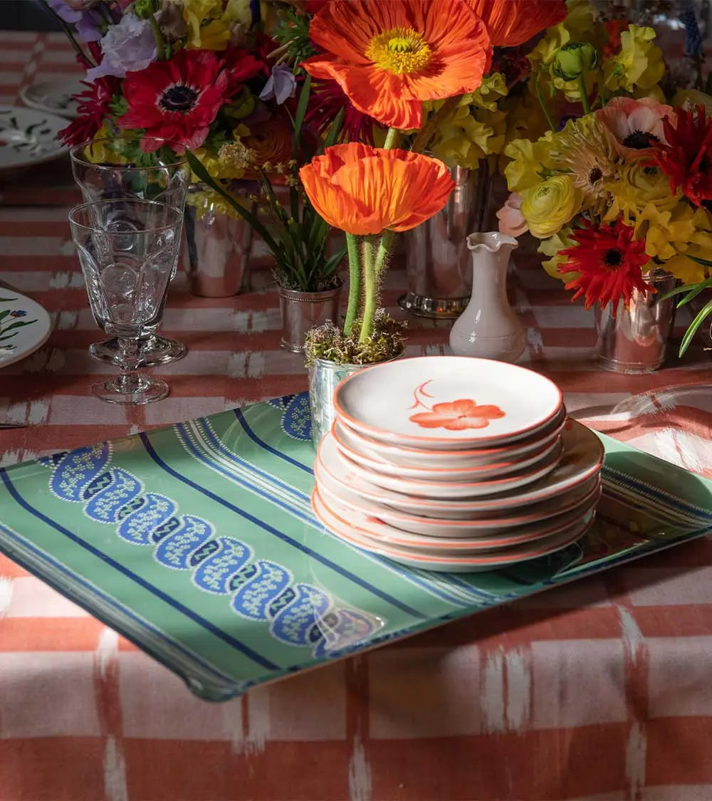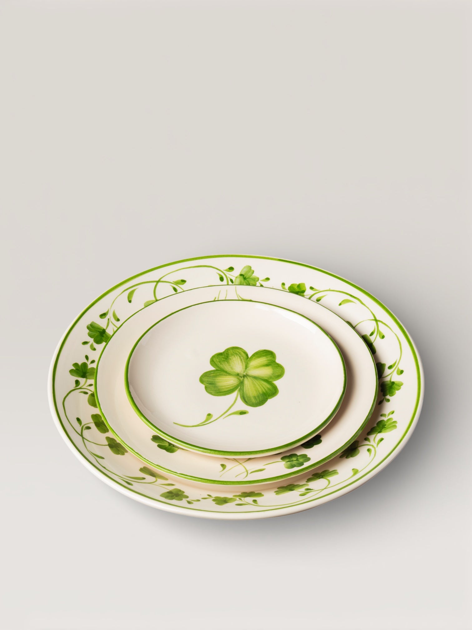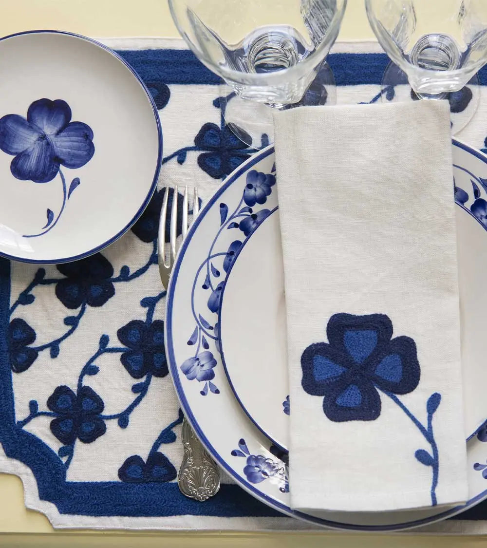 Delicate green or blue leaves, as if plucked from the spot, adorn these white-ground plates with a rim of the same color. Entirely handcrafted in Portugal using traditional methods, the Clover collection is hand-painted. Both charming and timeless, a symbol of renewed good fortune, it includes dinner plates and dessert plates, each featuring a lucky charm at its center. Its enduring theme makes it a must-have for any table. It mixes effortlessly with other ceramic pieces and thrives on all types of tables. It also makes a wonderful gift.