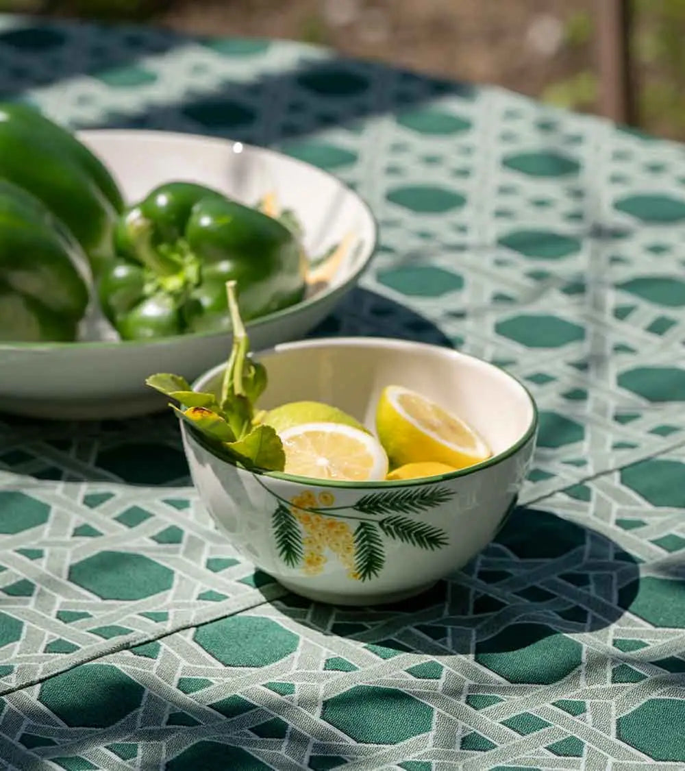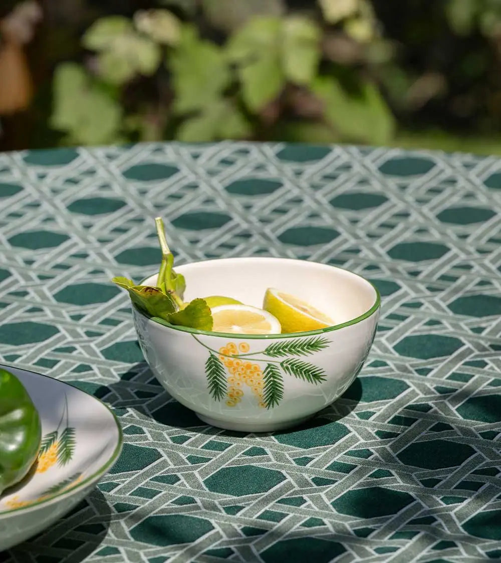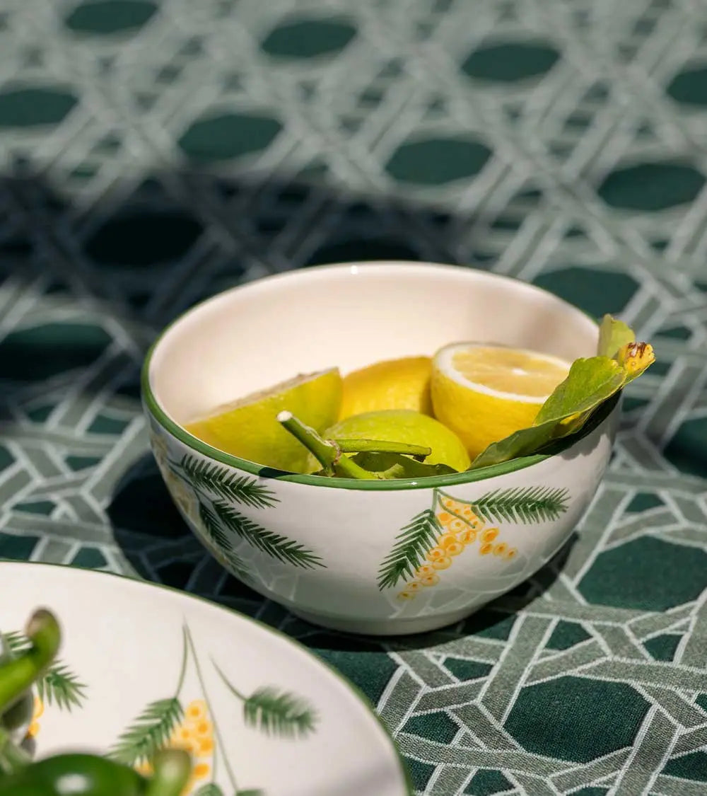 When the winter flowering tree brings its Mediterranean touch to the table and brightens it up, guests are delighted. This hand-painted branch motif adorns a bowl that completes the Mimosa collection. Already a must-have, highlighted with a touch of green.