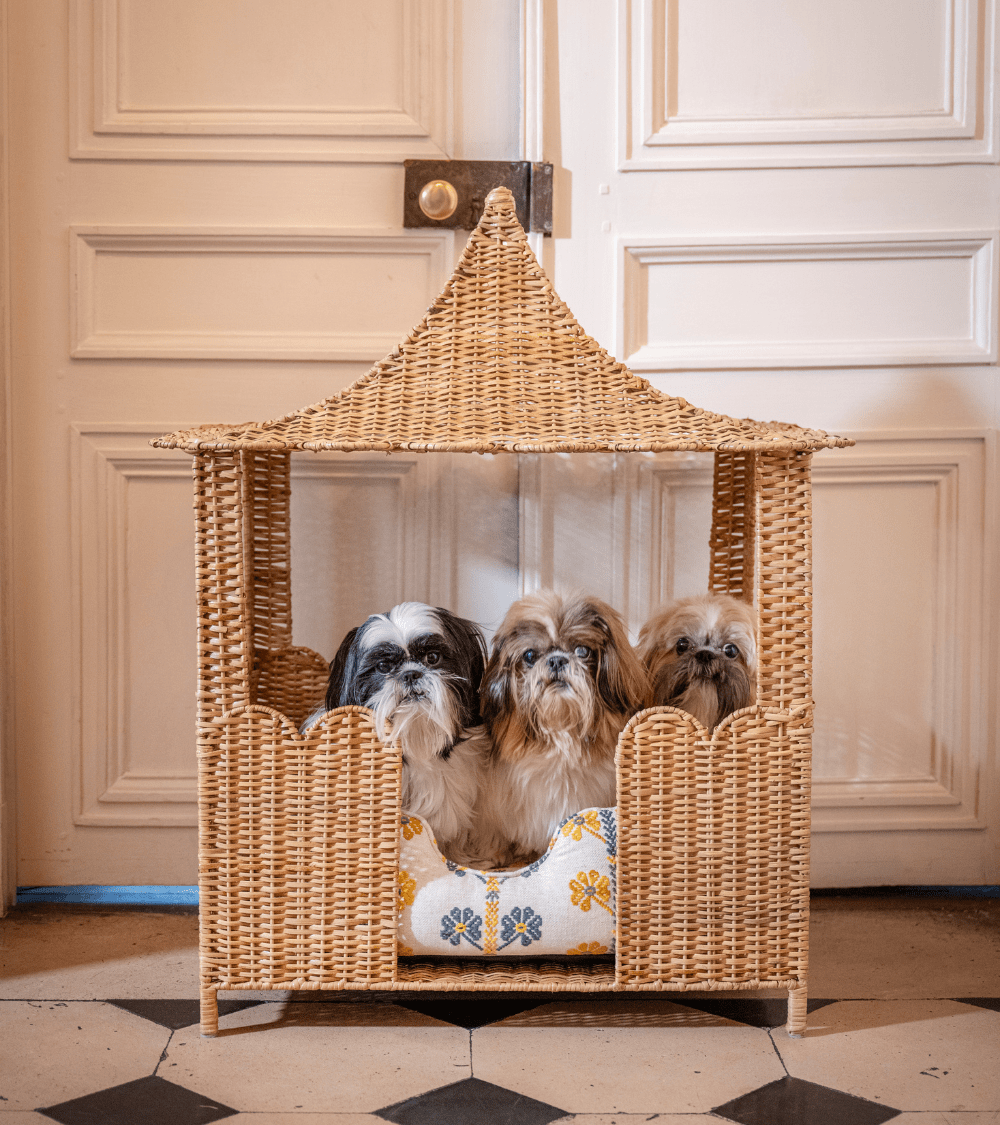 With its pagoda-inspired design, this rattan dog house combines comfort and style. Handwoven, it offers a cozy and airy space while blending seamlessly into your home décor. Its lightweight yet sturdy structure is perfect for small to medium-sized dogs. It can easily be equipped with a cushion or basket for added comfort.