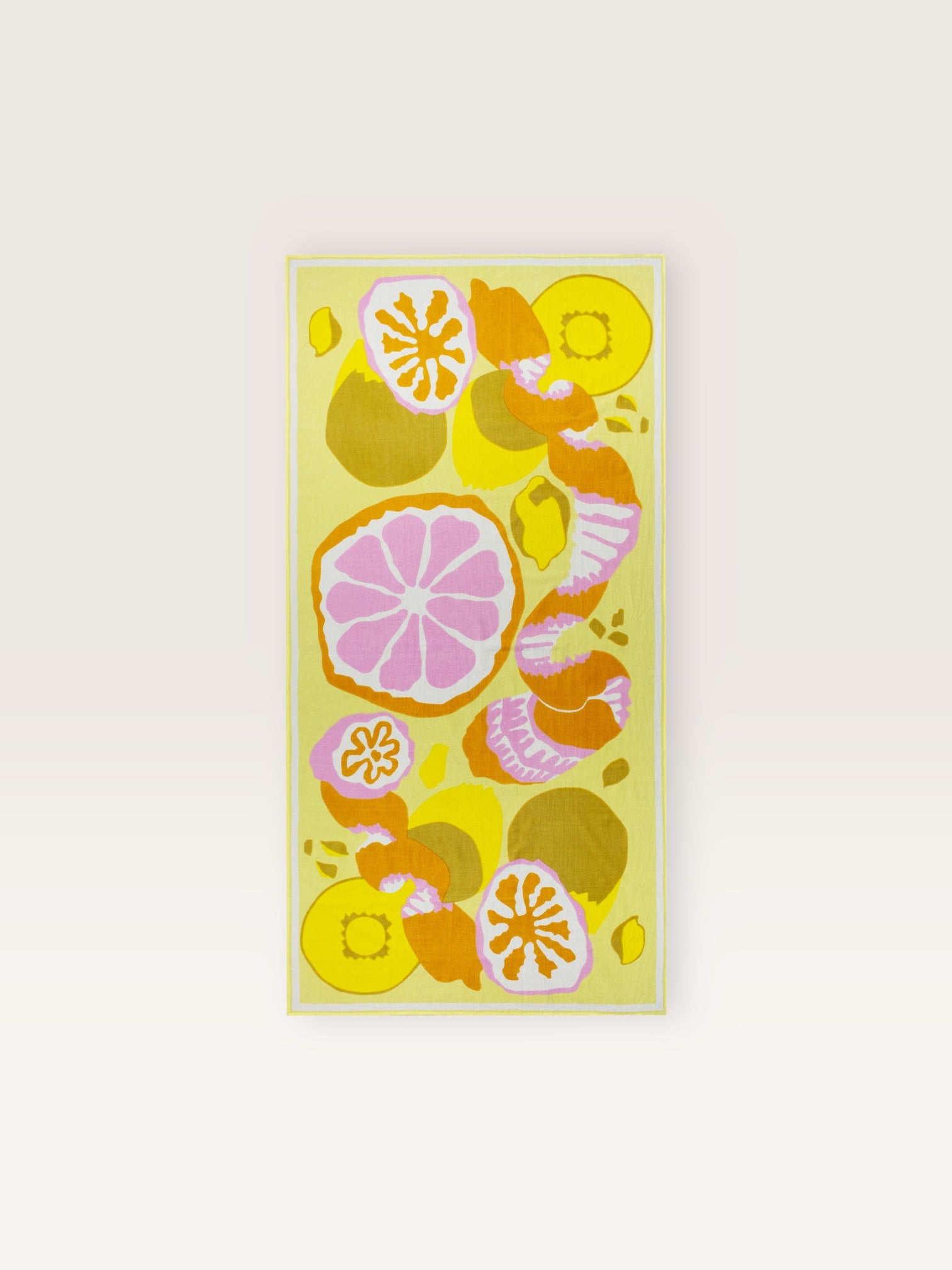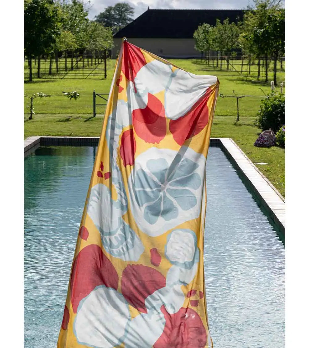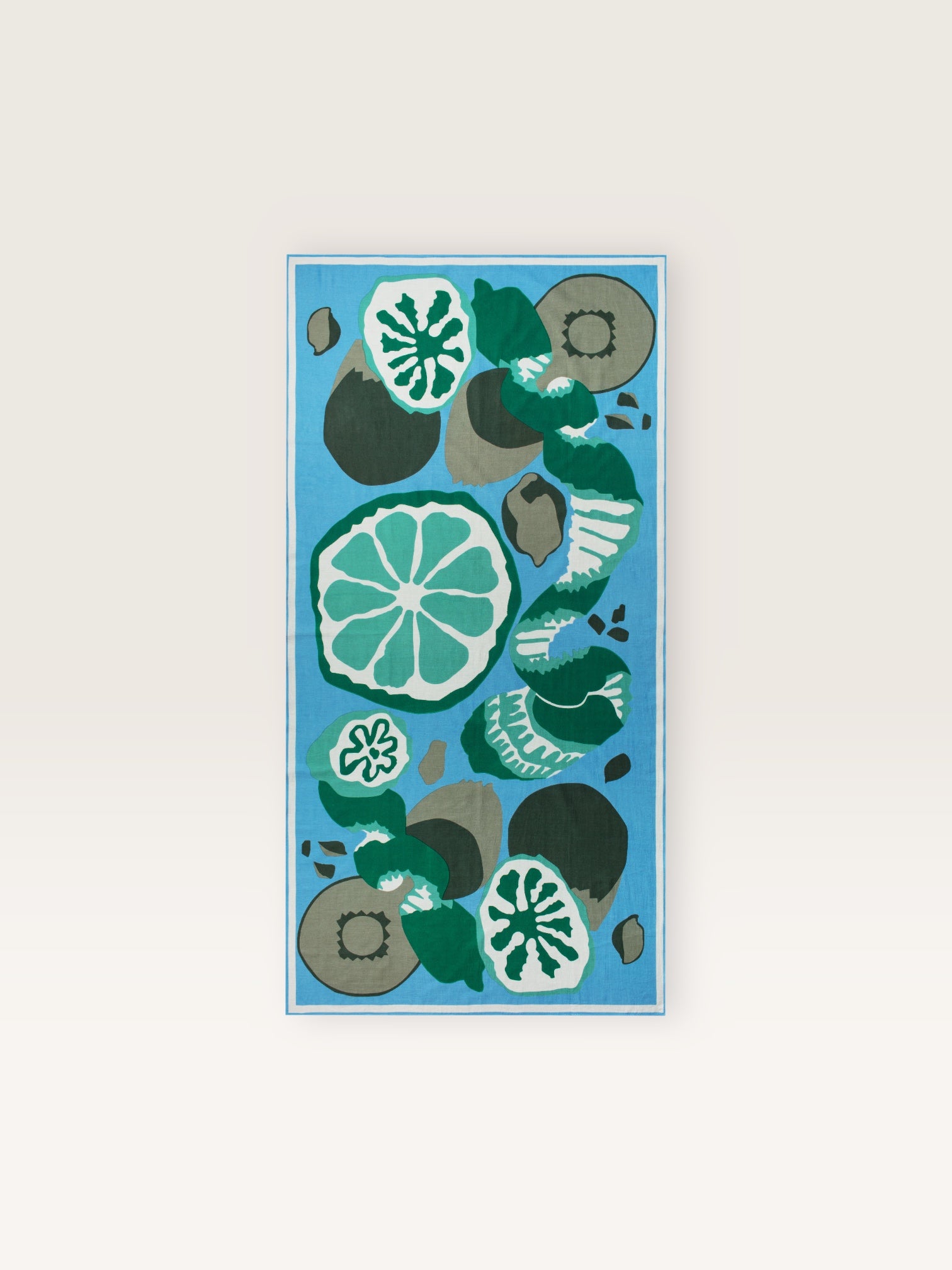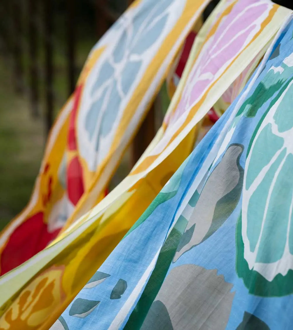 This season, Casa Lopez draws inspiration from the freshness of the Zeste rug to create three screen-printed cotton voile pareos. This magnificent design, which unfolds across the entire width of the fabric, depicts large, stylized citrus fruits that are both appetizing and generous. Offered in three color combinations—green and khaki on a blue background, red and blue-gray on a yellow background, and anise and khaki on a mauve background—these deliberately distressed prints create a softer, blended effect. These essential summer accessories are already promising to grace beach loungers and sun-kissed waists. Treat yourself or someone special, and in the evening, or at lunch, stylish women are even daring to wear them as dresses, tied around the neck.