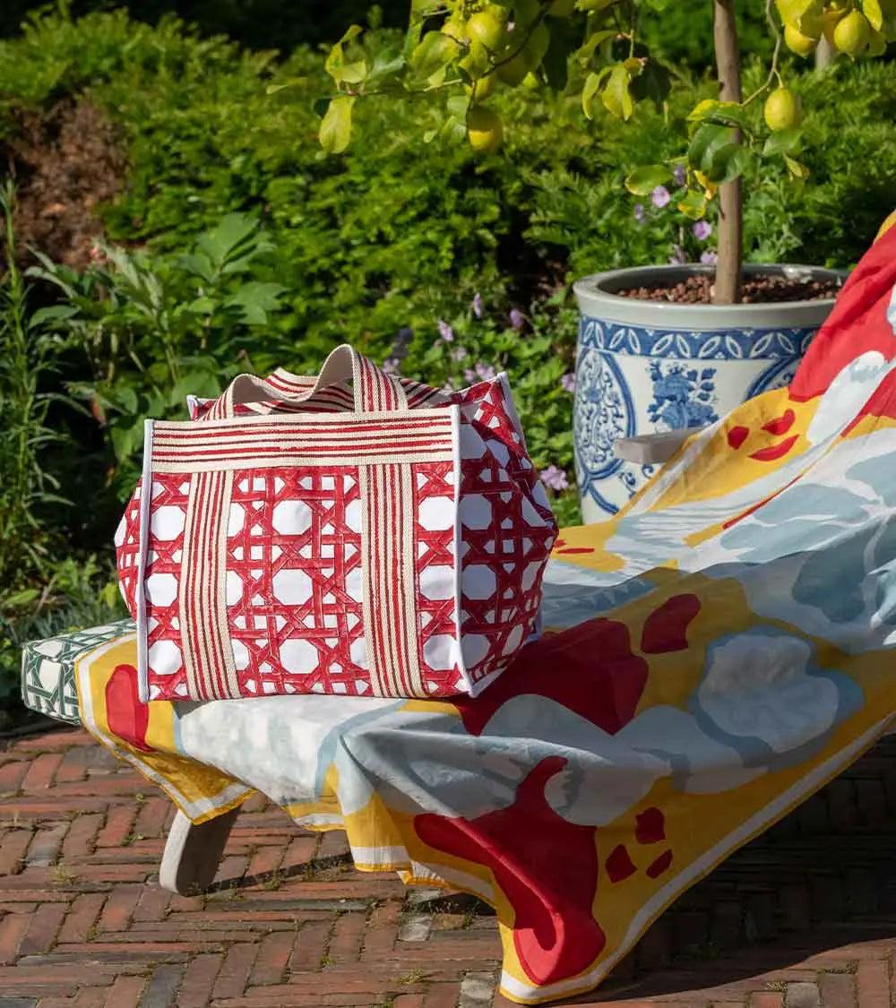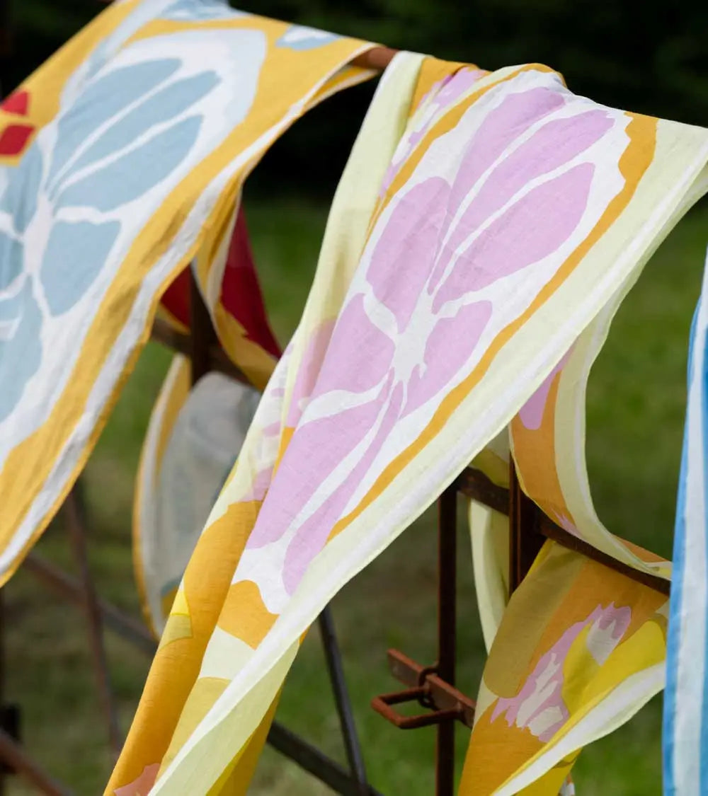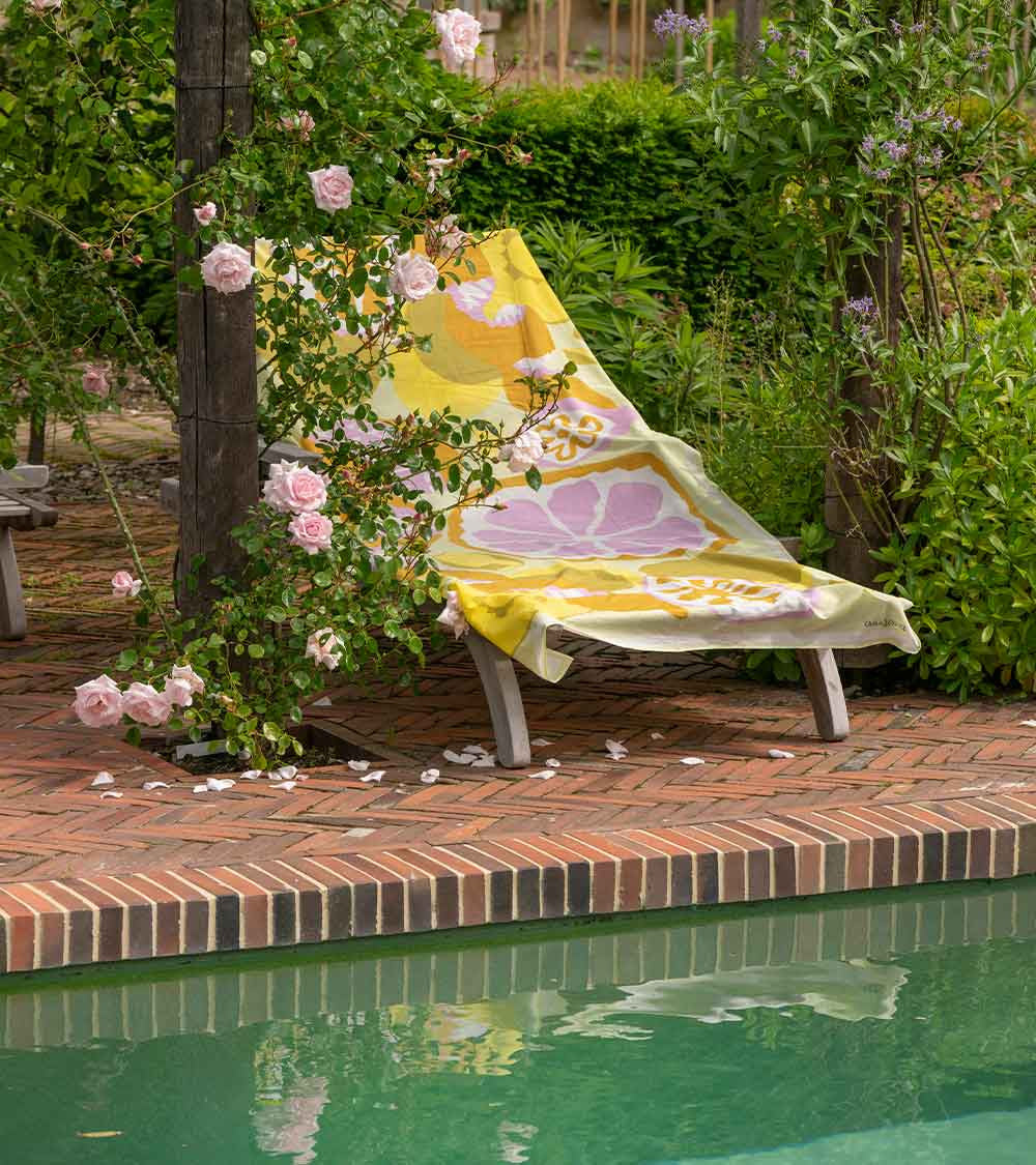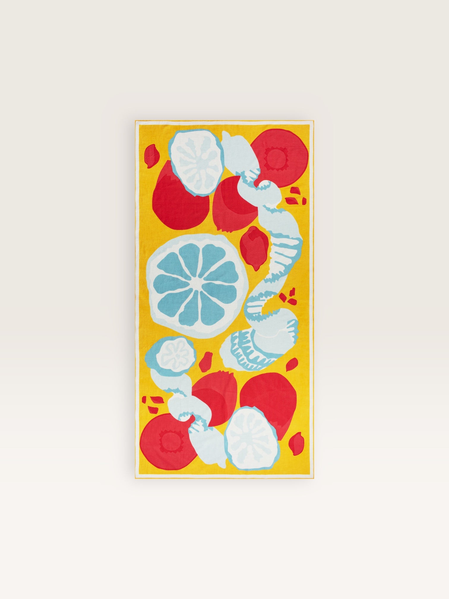 This season, Casa Lopez draws inspiration from the freshness of the Zeste rug to create three screen-printed cotton voile pareos. This magnificent design, which unfolds across the entire width of the fabric, depicts large, stylized citrus fruits that are both appetizing and generous. Offered in three color combinations—green and khaki on a blue background, red and blue-gray on a yellow background, and anise and khaki on a mauve background—these deliberately distressed prints create a softer, blended effect. These essential summer accessories are already promising to grace beach loungers and sun-kissed waists. Treat yourself or someone special, and in the evening, or at lunch, stylish women are even daring to wear them as dresses, tied around the neck.