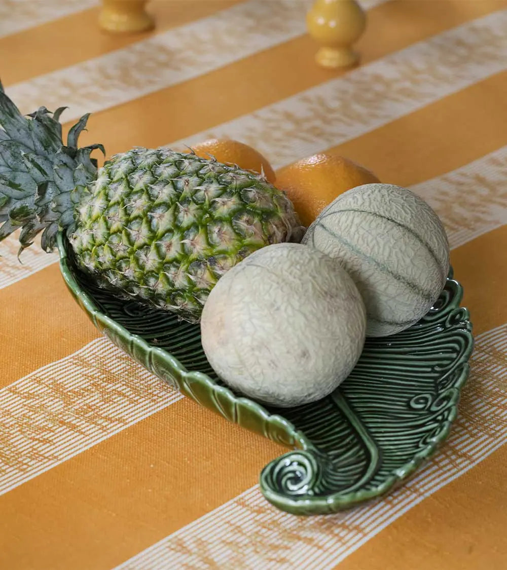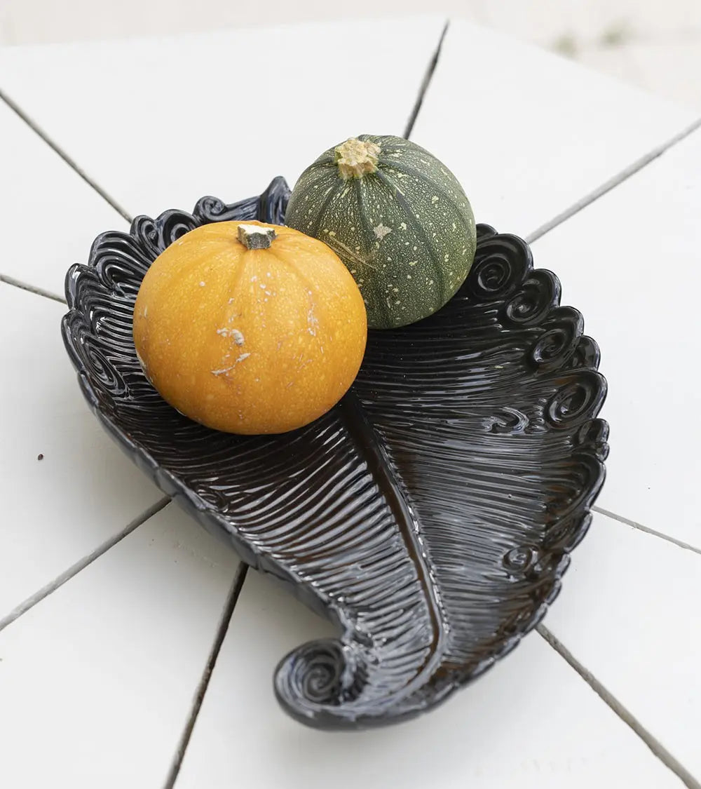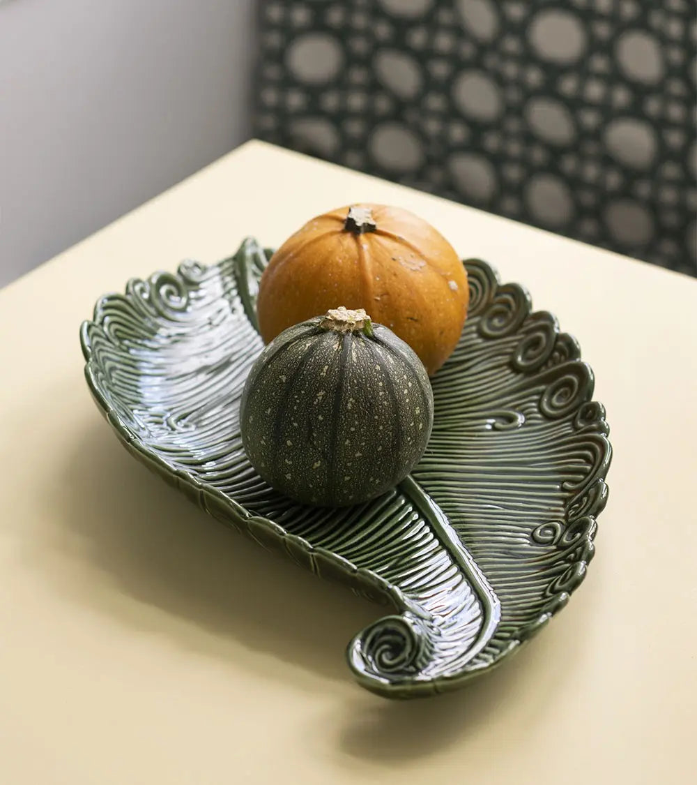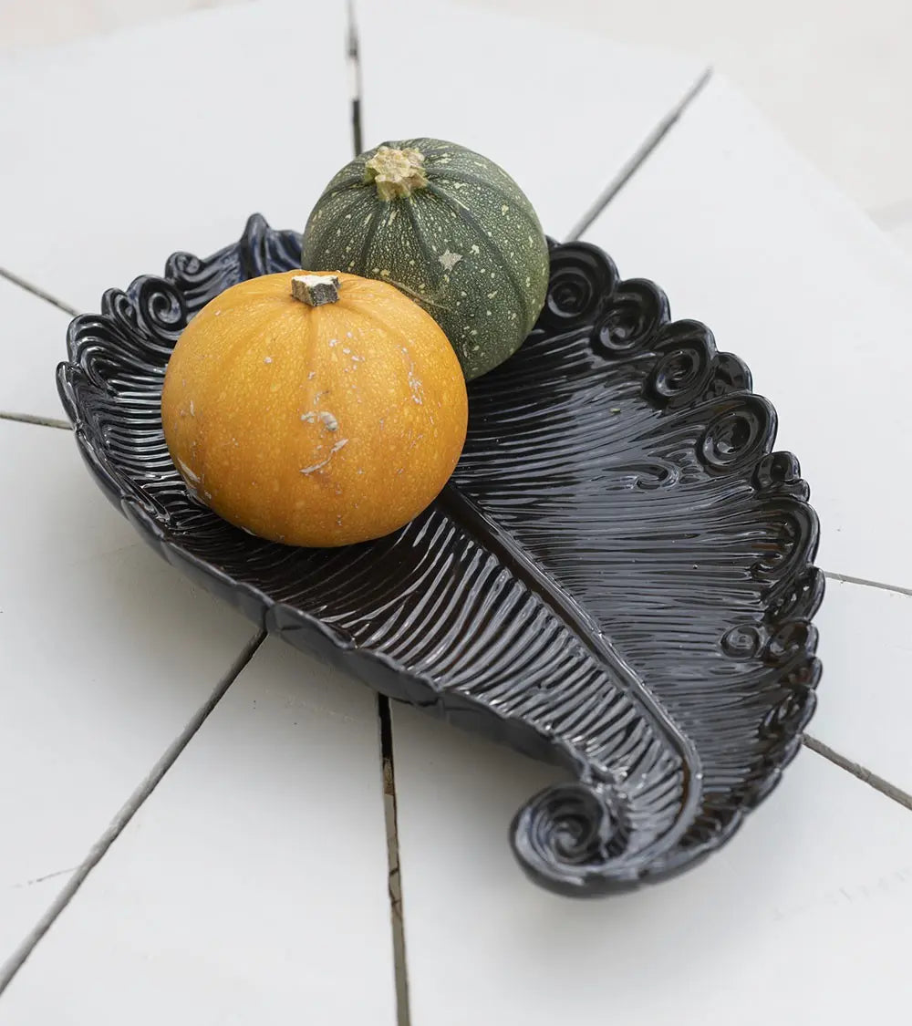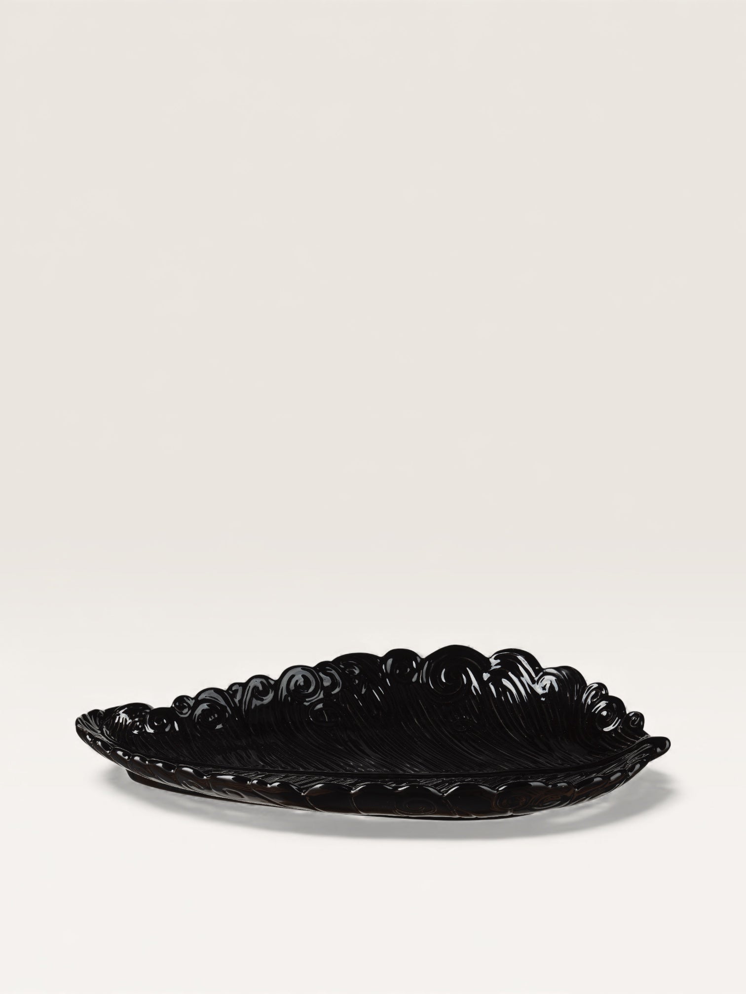 This shaped dish, adorned with light and delicate feathers, is adorned with vibrant colors and its translucent ribbed cushion holds hors d'oeuvres, pretty salads, or a few dried fruits. It can also serve as a catch-all tray and fit neatly in a bathroom, bedroom, or on a desk.