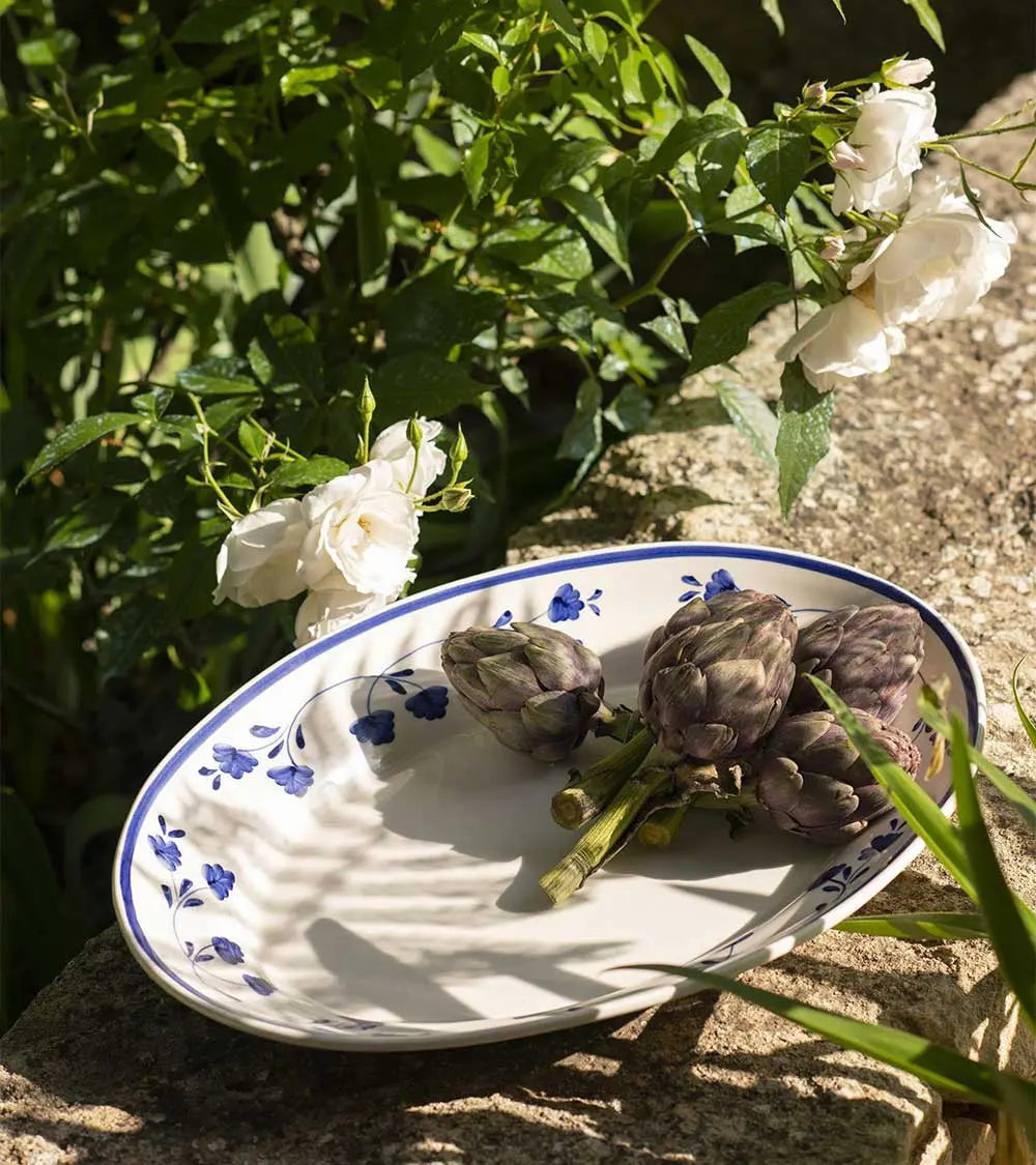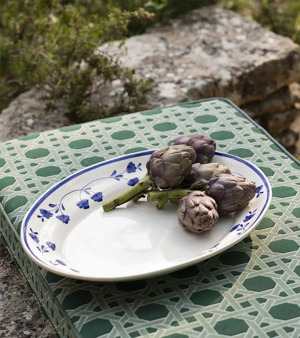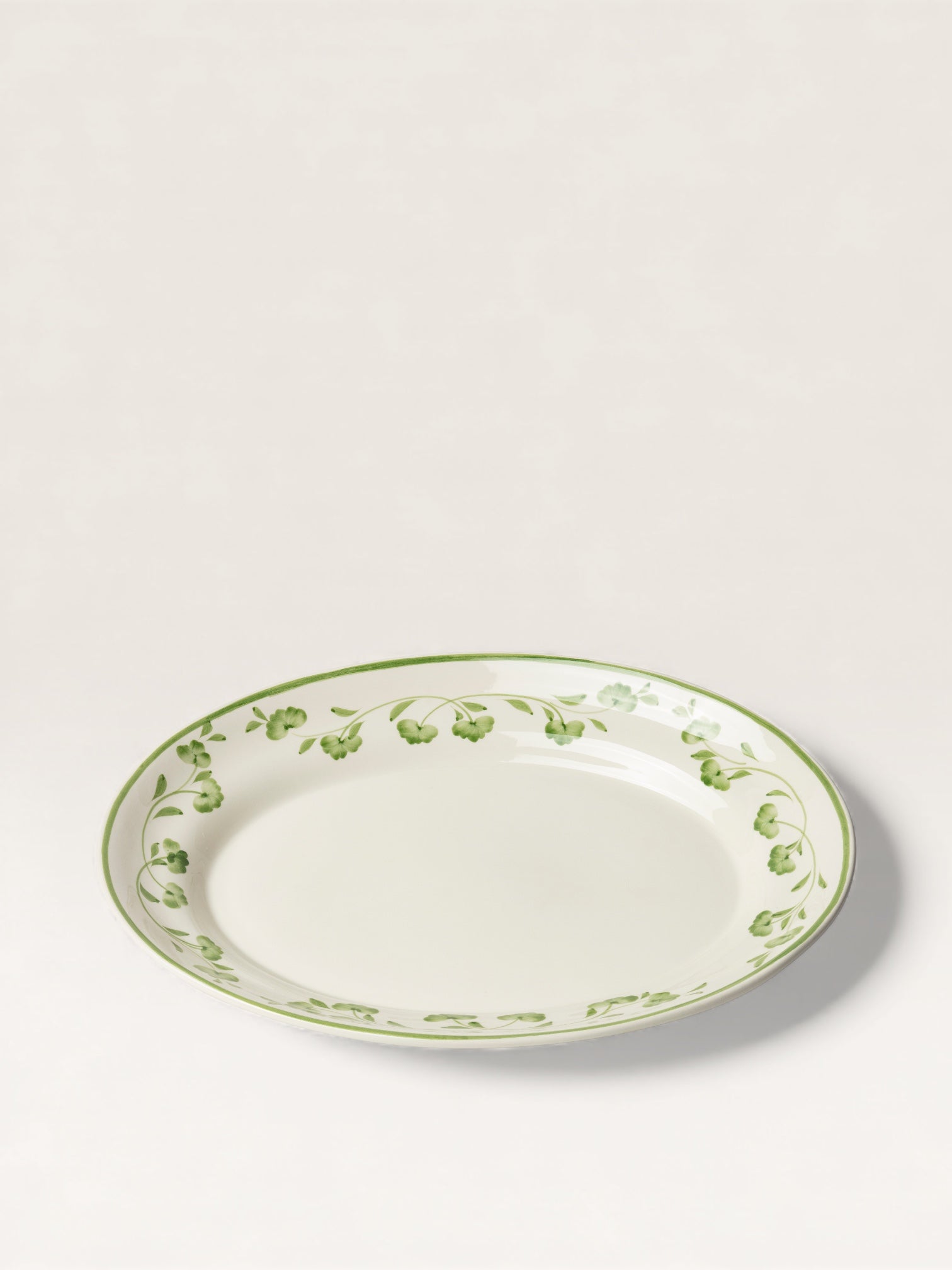 Oval in shape and with high enough sides to hold saucy dishes, these hand-painted ceramic platters perfectly complement Casa Lopez's tableware collections. Choose them as a matching set or, conversely, mix and match them with other patterns to create a delightful visual effect on your table. The Clover platter is the ideal companion to the dinnerware of the same name. Decorated around its rim with a frieze of clovers in a fresh and delicate design, this two-tone platter is available in blue or green.