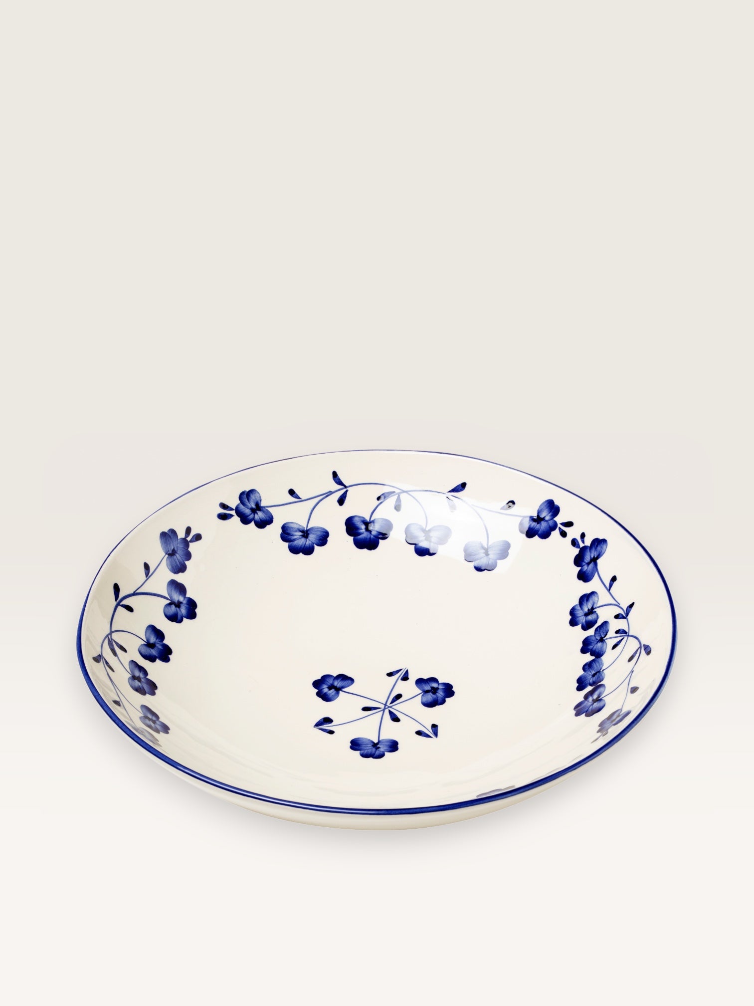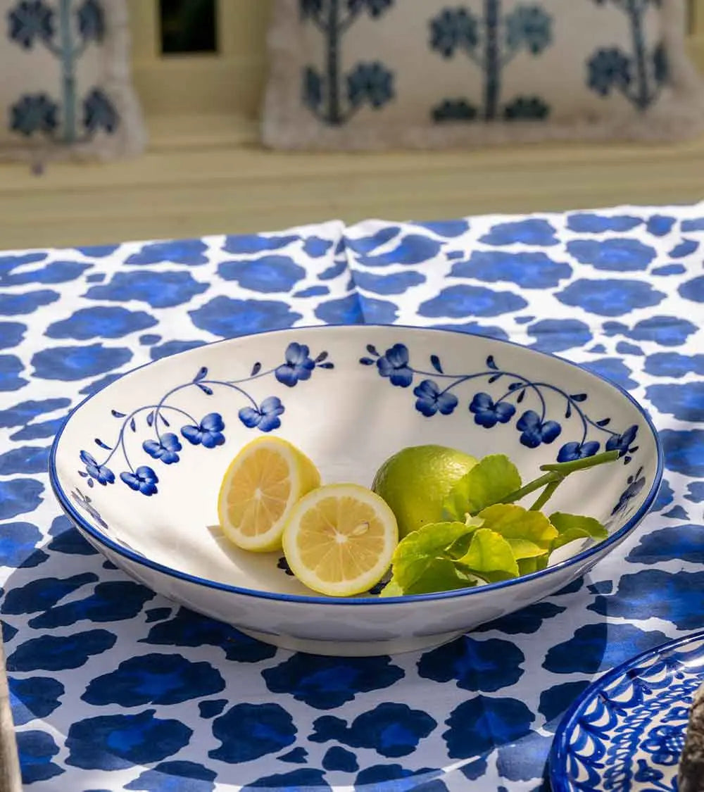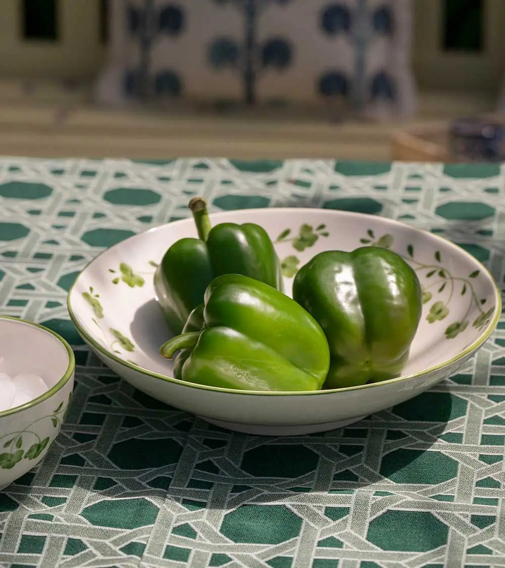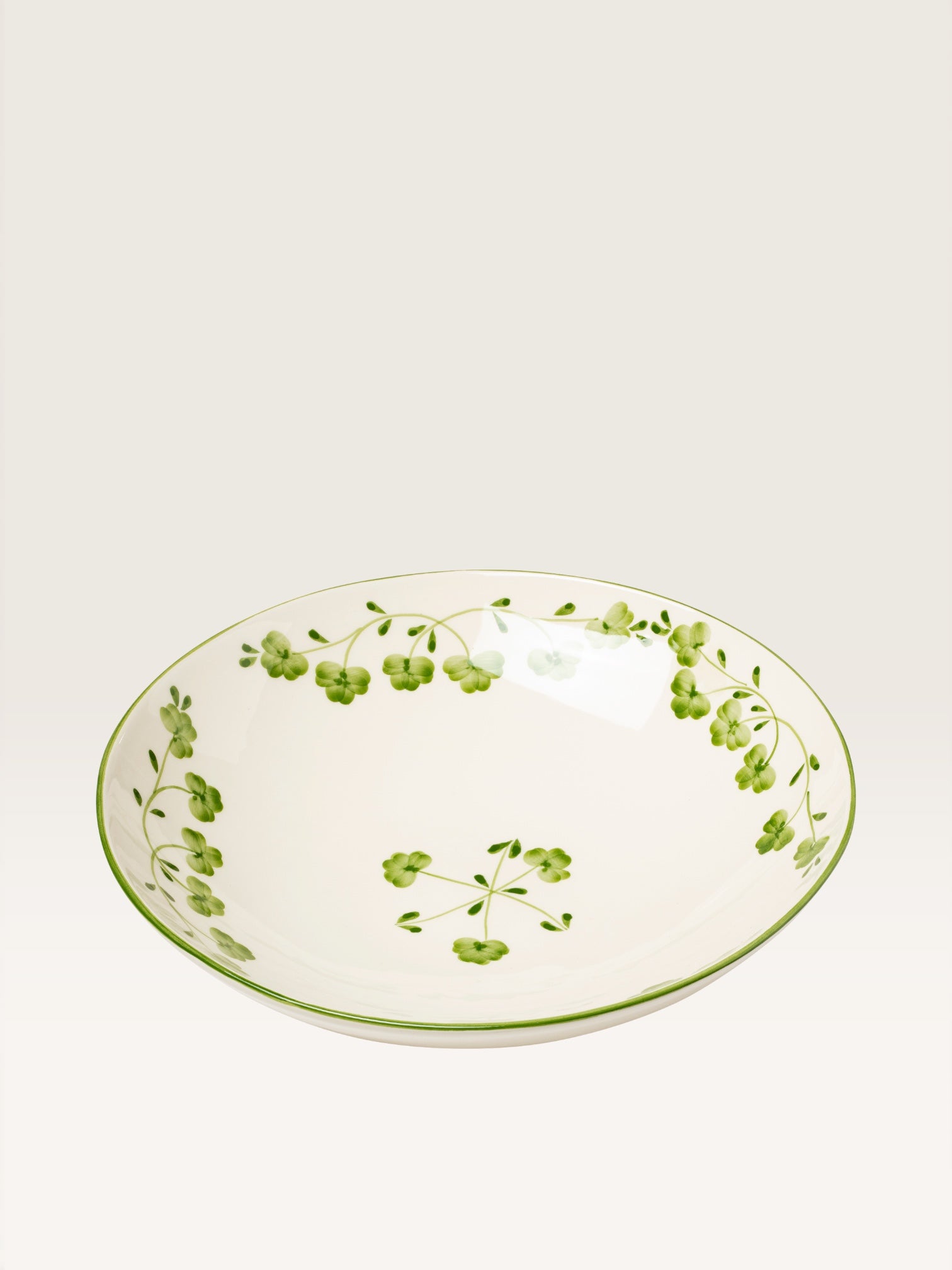 This generously sized salad bowl, with its perfectly wide opening for vegetable arrangements, is decorated with the lucky four-leaf clover motif. Beautifully scattered here and there, this design has become a Casa Lopez classic, both for its promise and its delicate beauty.