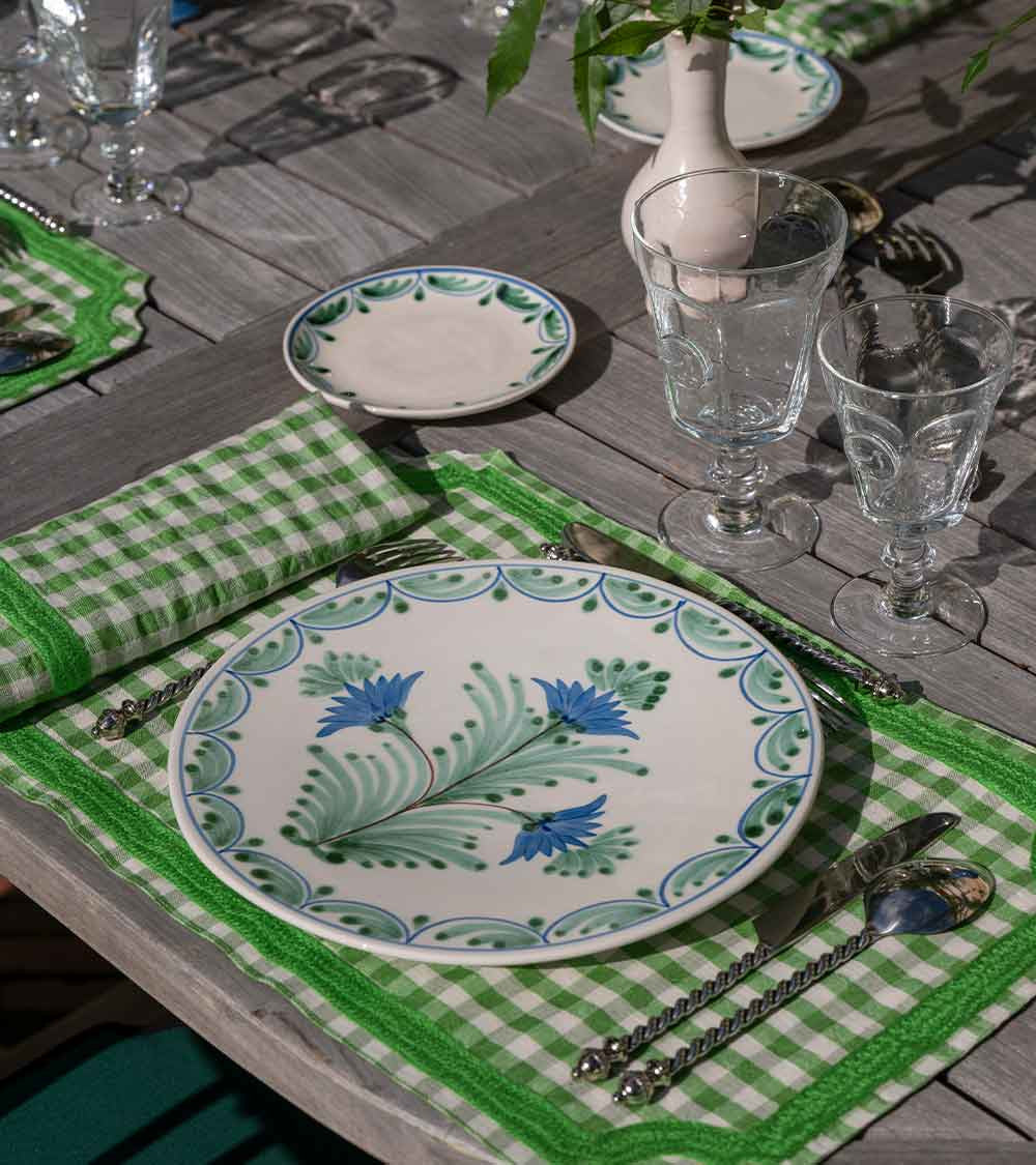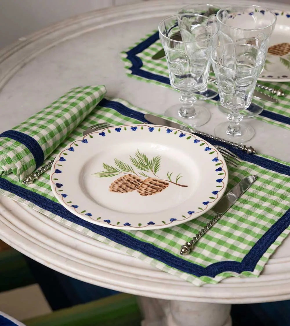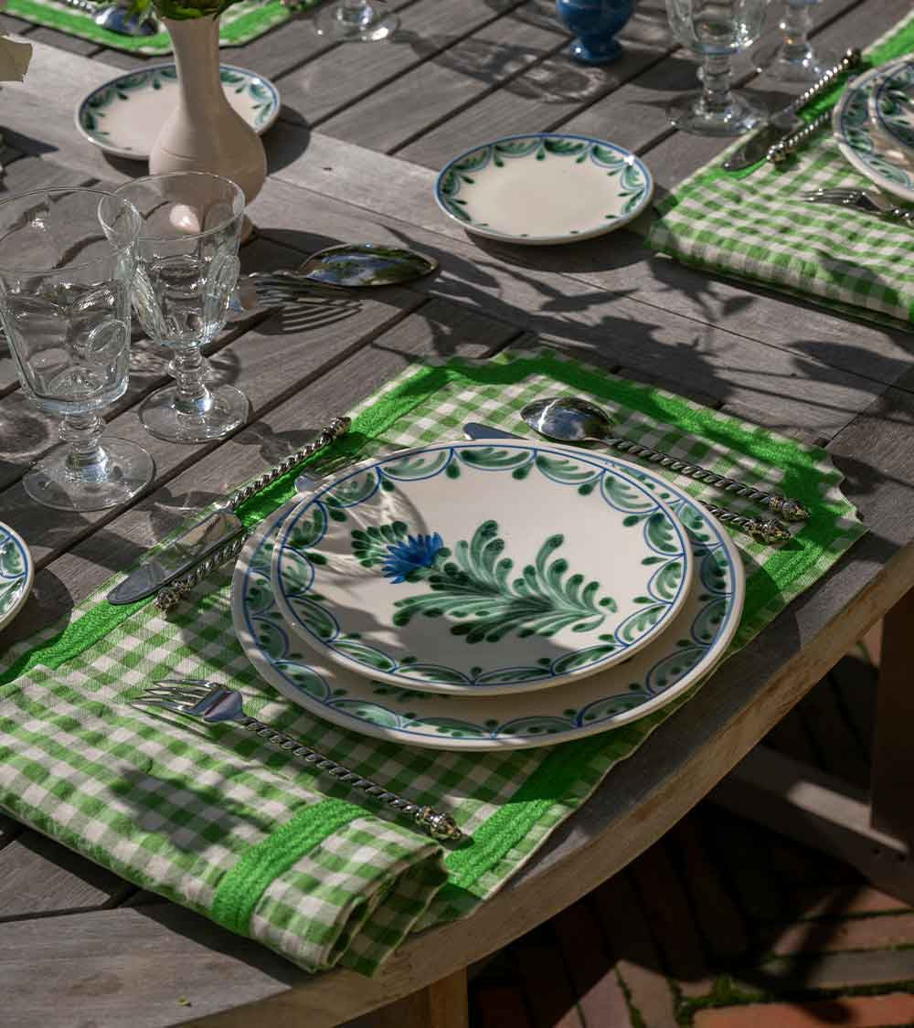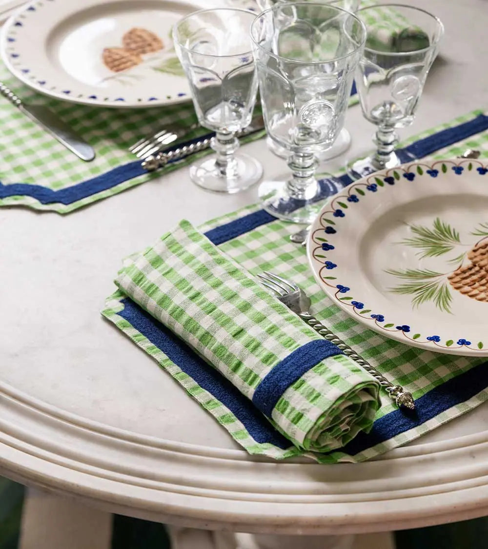 A first for Casa Lopez: linen and cotton napkins now come in a gingham pattern, inspired by the famous woven checkered fabric that Princess Eugenie helped popularize. These napkins, available in green and cream and embroidered with a wool border, are accompanied by matching placemats. Use them for a complete look or mix and match with solid colors. A way to expand your collection and broaden your dining possibilities!