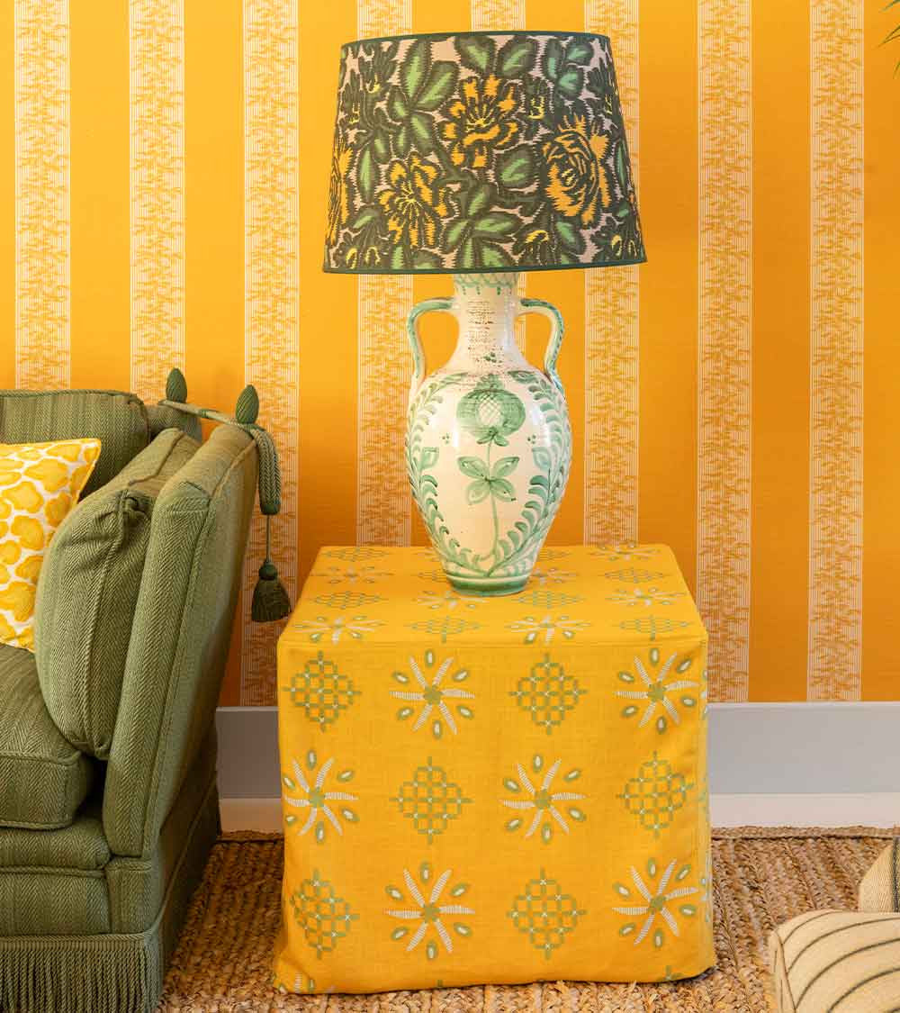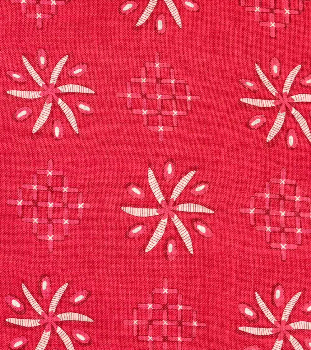 Stylized motifs arranged in a checkerboard pattern: a rosette punctuated with oval shapes, alternating with a geometric trellis.